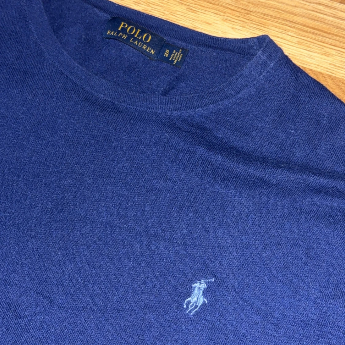 Mörkblå stickad tröja från Polo Ralph Lauren med klassisk rund halsringning och broderad logga på bröstet. Tröjan har lång ärm och är tillverkad i mjukt material som passar perfekt för lager-på-lager-stil.