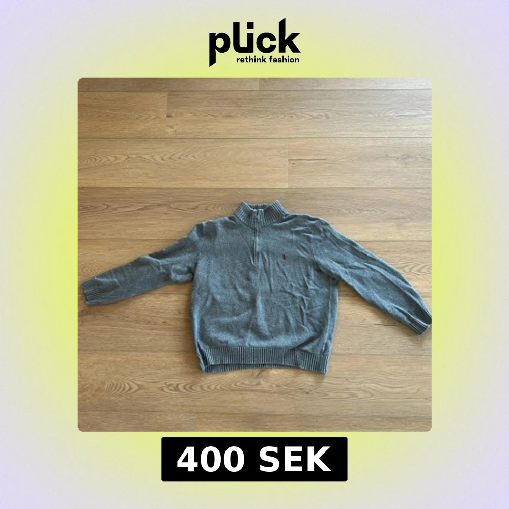 Säljer en begagnad stilren grå tröja från Ralph Lauren med dragkedja vid halsen. Tröjan har långa ärmar och ribbade muddar vid ärmslut och nederkant. Perfekt för en avslappnad och snygg look.