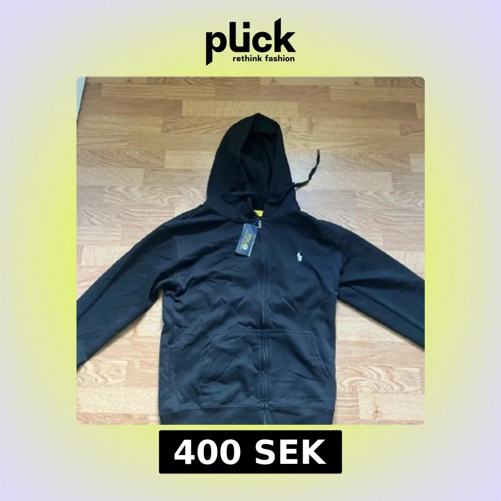 Svart hoodie från Polo Ralph Lauren i storlek XL. Klassisk design med huva, snörning och dragkedja framtill. Broderad vit logga på bröstet och mjukt bomullsmaterial. Perfekt för en chill och stilren look.