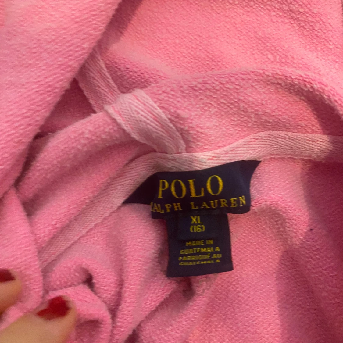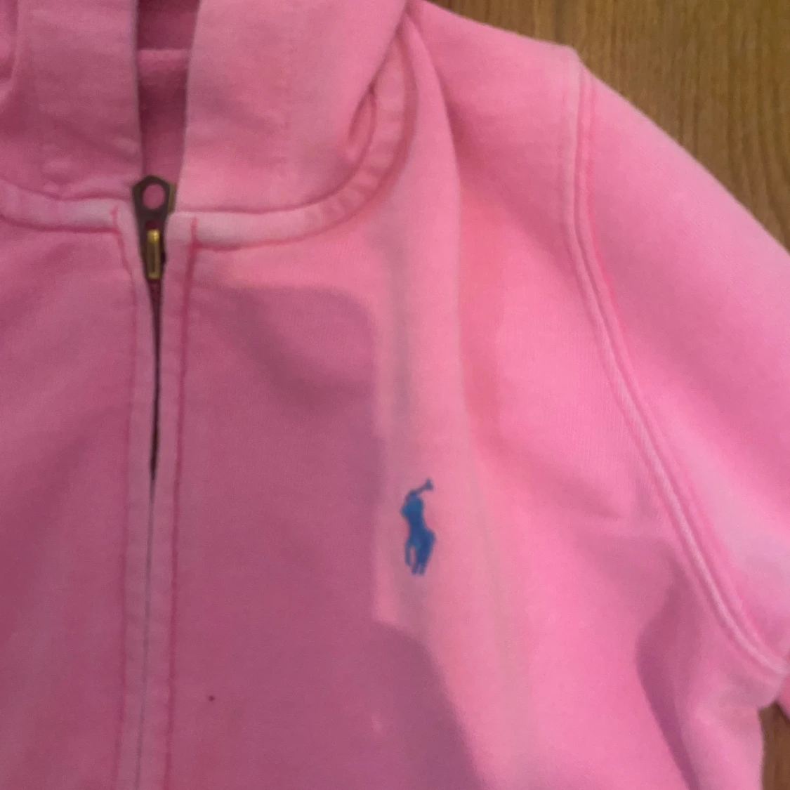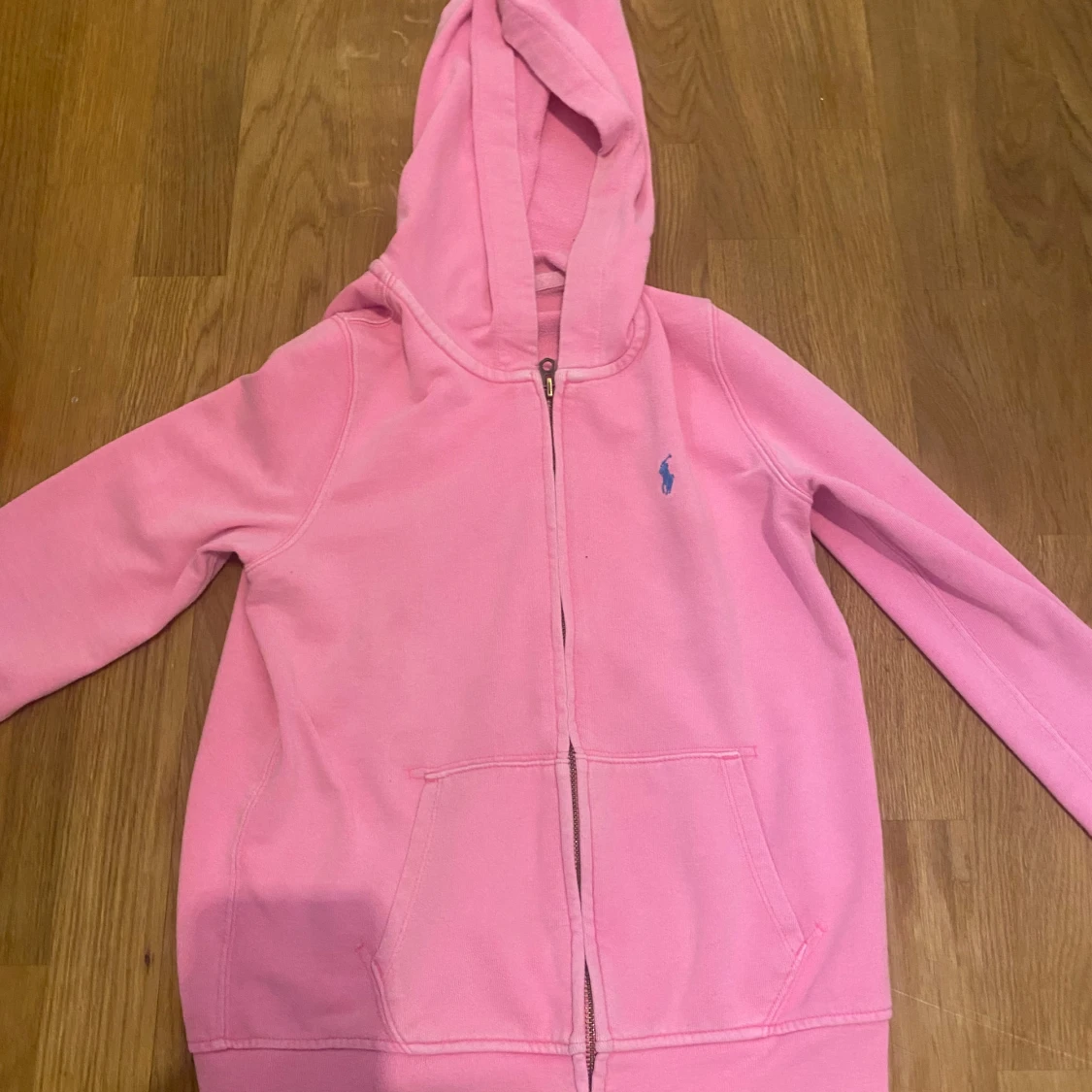 Säljer en snygg rosa hoodie från Ralph Lauren med dragkedja och huva. Den har en liten blå logga på bröstet och är perfekt för en avslappnad stil. Passar bra till både jeans och mjukisbyxor. Perfekt för kyliga dagar! Vet inte om jag själv tycker den är för XL kan nog säga s elr xs om jag ska va ärlig
