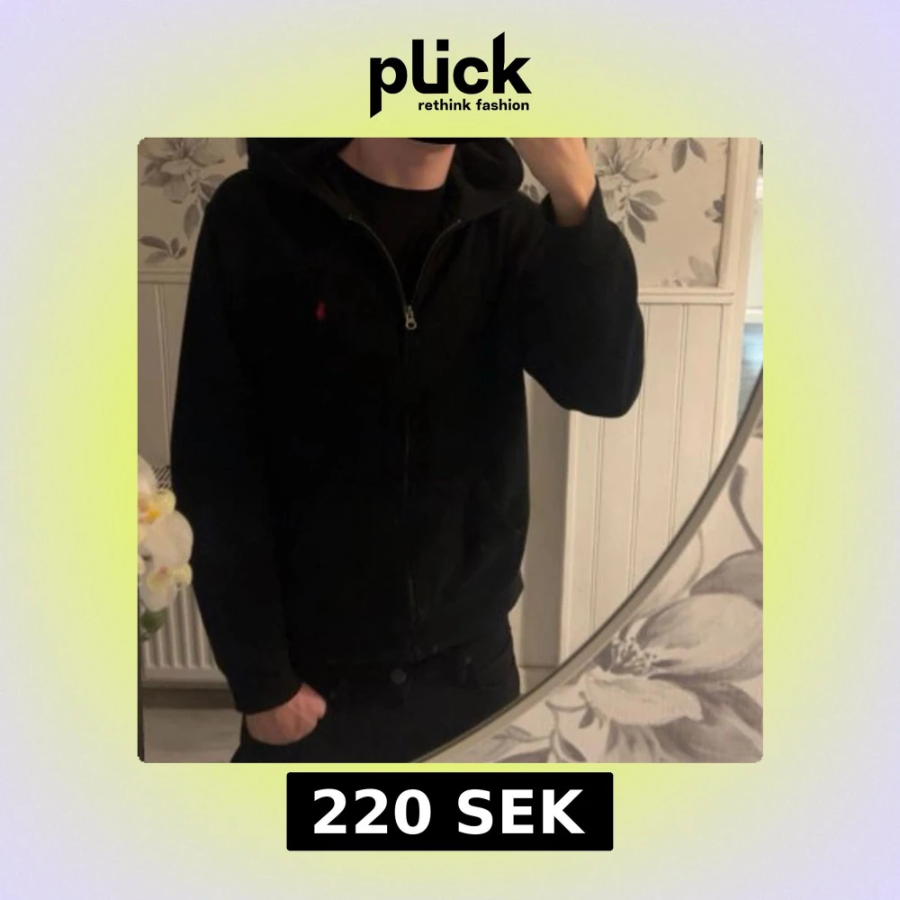 Svart hoodie från Polo Ralph Lauren i storlek XL. Klassisk design med huva, dragkedja framtill och rött broderat Polo-logo på bröstet. Perfekt för chill dagar och enkel att matcha med jeans eller joggers.
