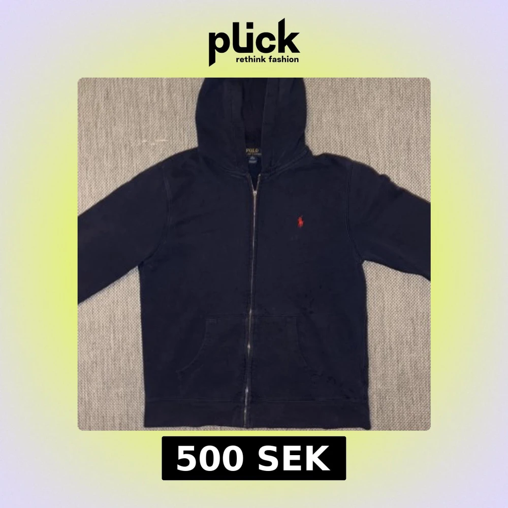 Snygg marinblå hoodie från Polo Ralph Lauren med dragkedja och klassisk röd logga på bröstet. Tröjan har huva, känguruficka och långa ärmar. Perfekt för en chill och avslappnad stil.