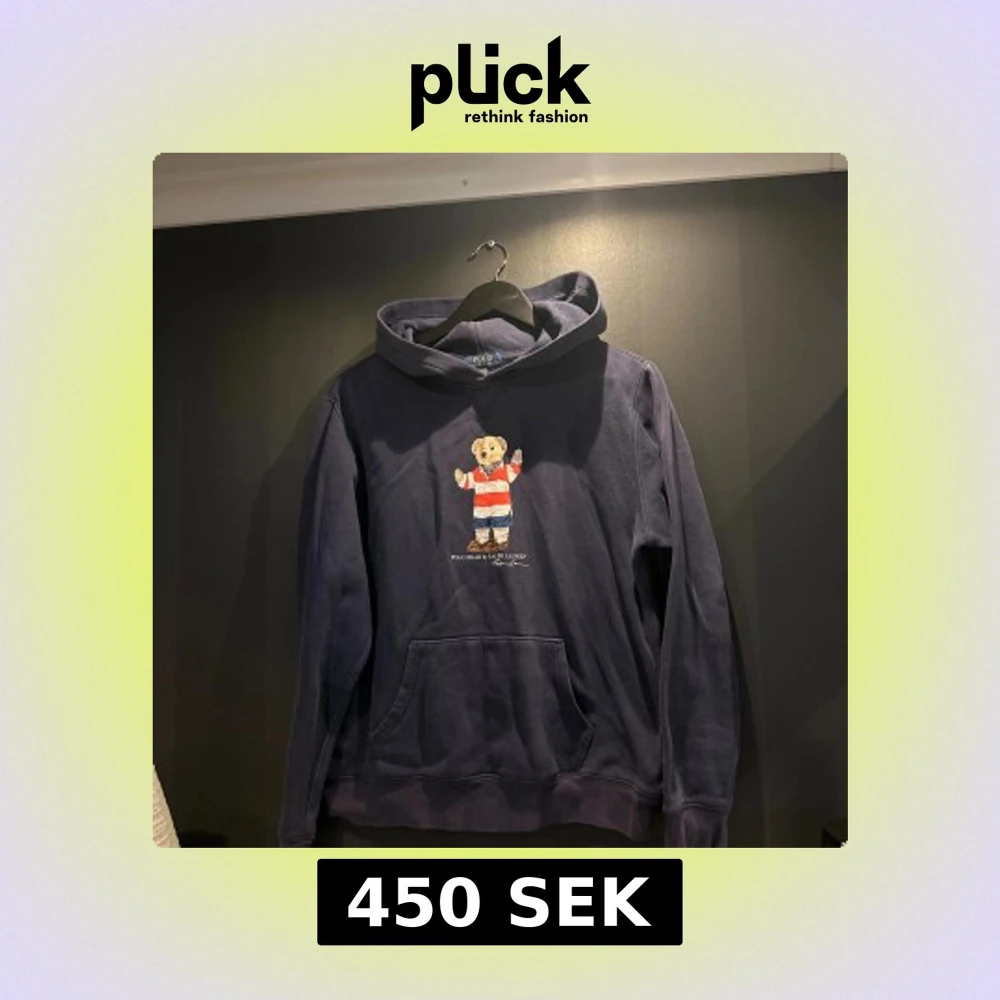 Mörkblå hoodie från Polo Ralph Lauren i storlek XL barnstorlek. Passar som S. ikonisk Polo Bear broderad på bröstet i röd, vit och blå tröja. Klassisk känguruficka och huva, perfekt för en chill och snygg look.