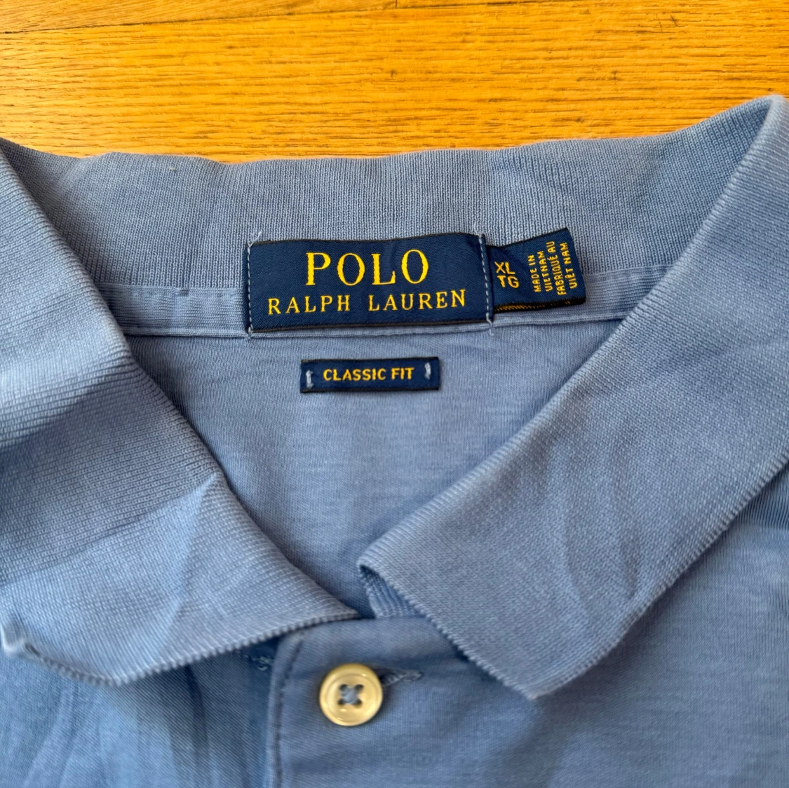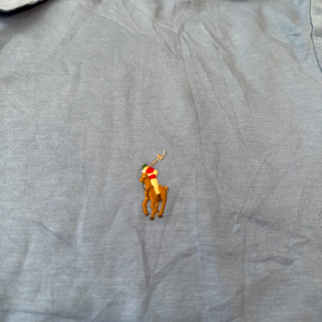 Klassisk ljusblå pikétröja från Polo Ralph Lauren i bomull. Tröjan har krage, tre knappar och den ikoniska broderade polospelaren på bröstet. Classic fit-modell som är perfekt för en avslappnad men ändå stilren look.