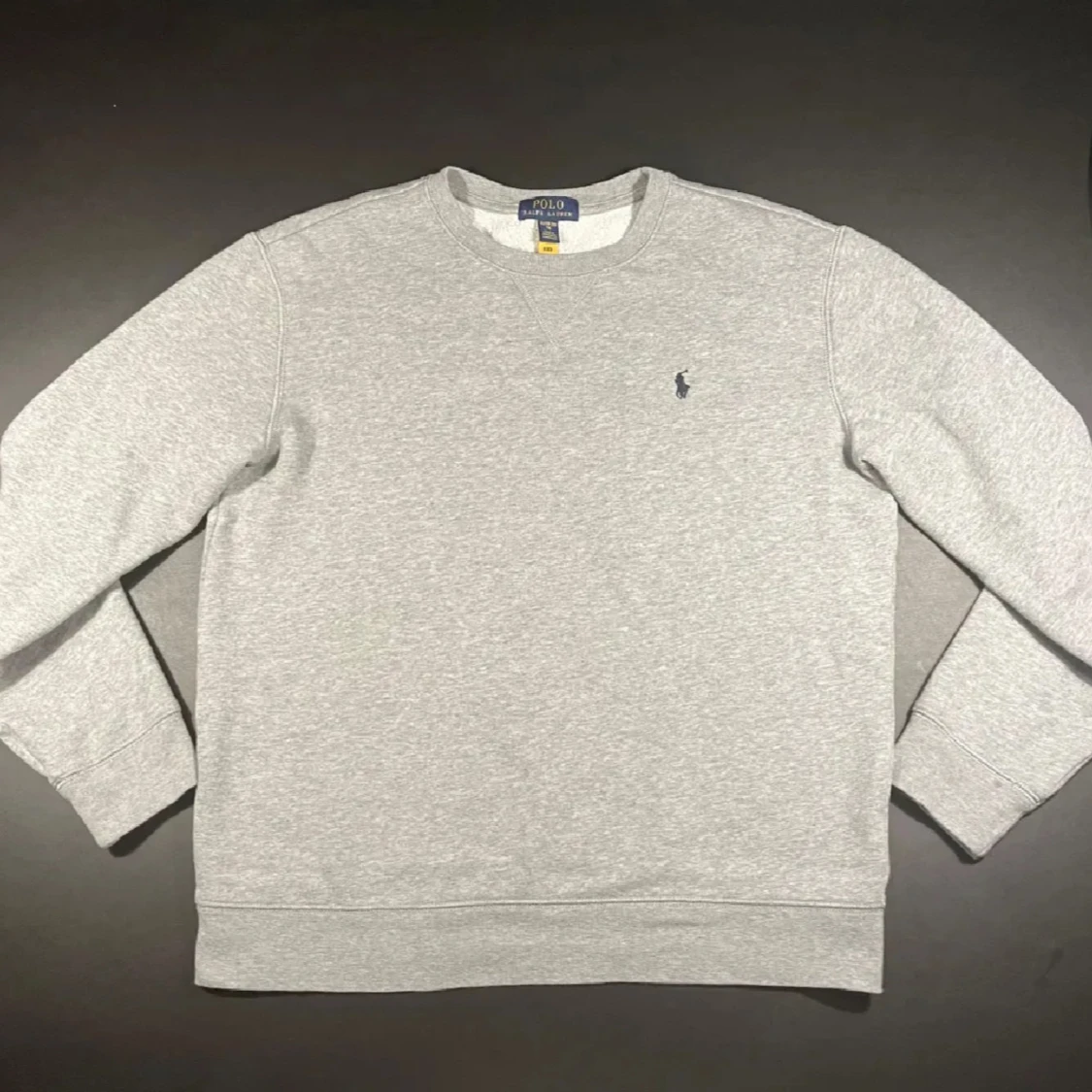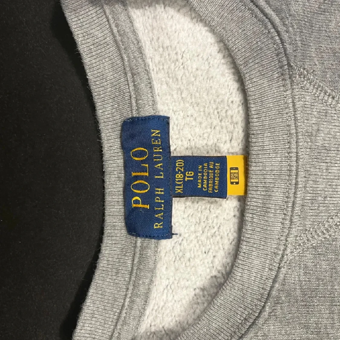 Ralph Lauren Sweatshirt i grå med mörkblå logga. Skick 8/10 annvänd men inga hål eller större fläckar på. Storlek XL i barn storlek sitter ungefär som XS i vuxen storlek. Köpt från kidsbrandstore nypris 1095kr. Hör av er vid frågor eller funderingar!