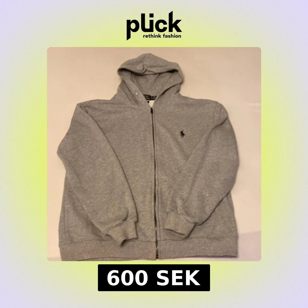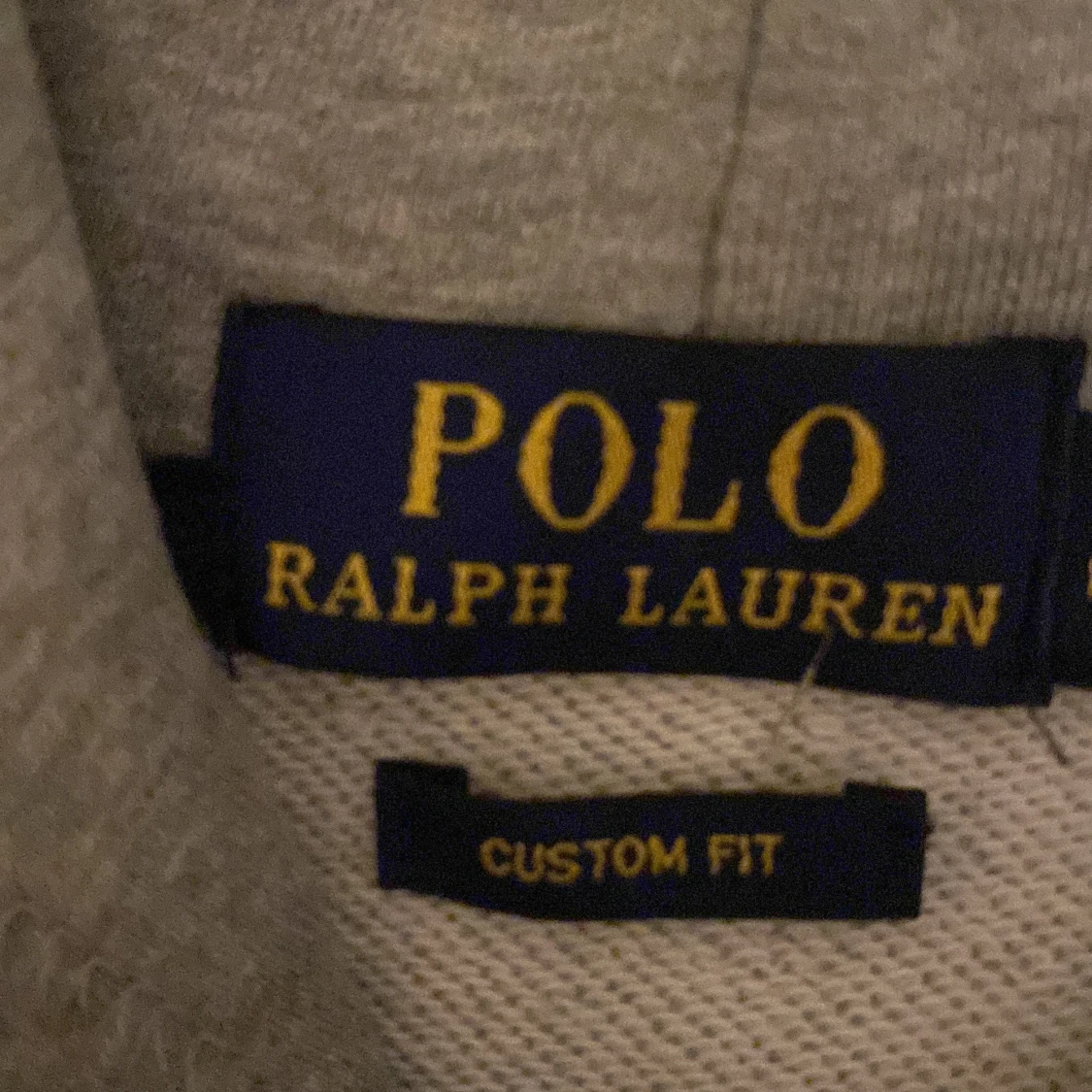 Grå hoodie från Polo Ralph Lauren med dragkedja framtill och klassisk huva. Köpte den helt ny men var liten för mig