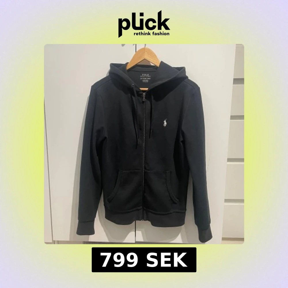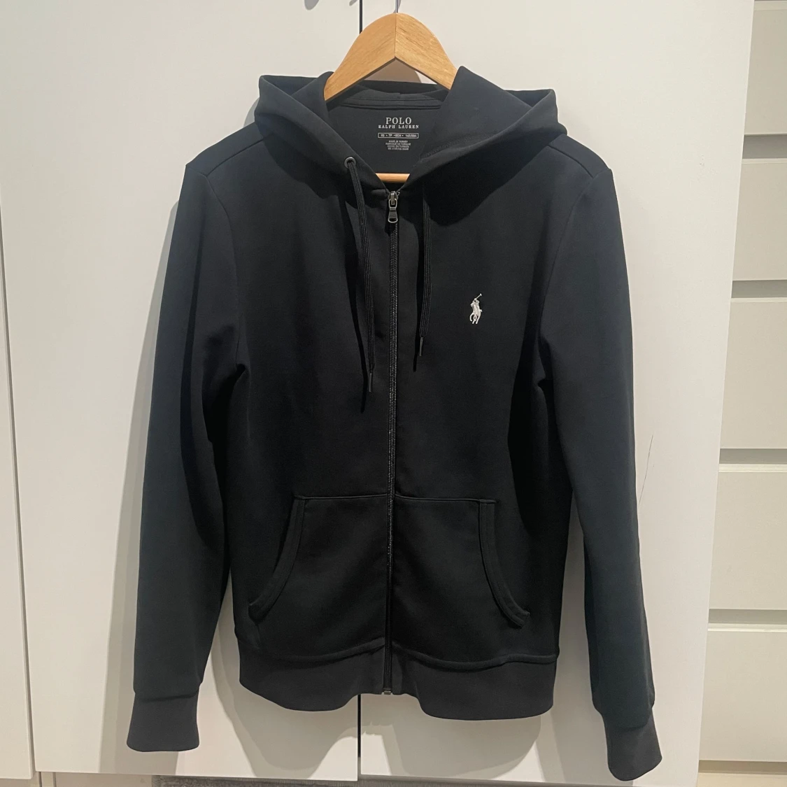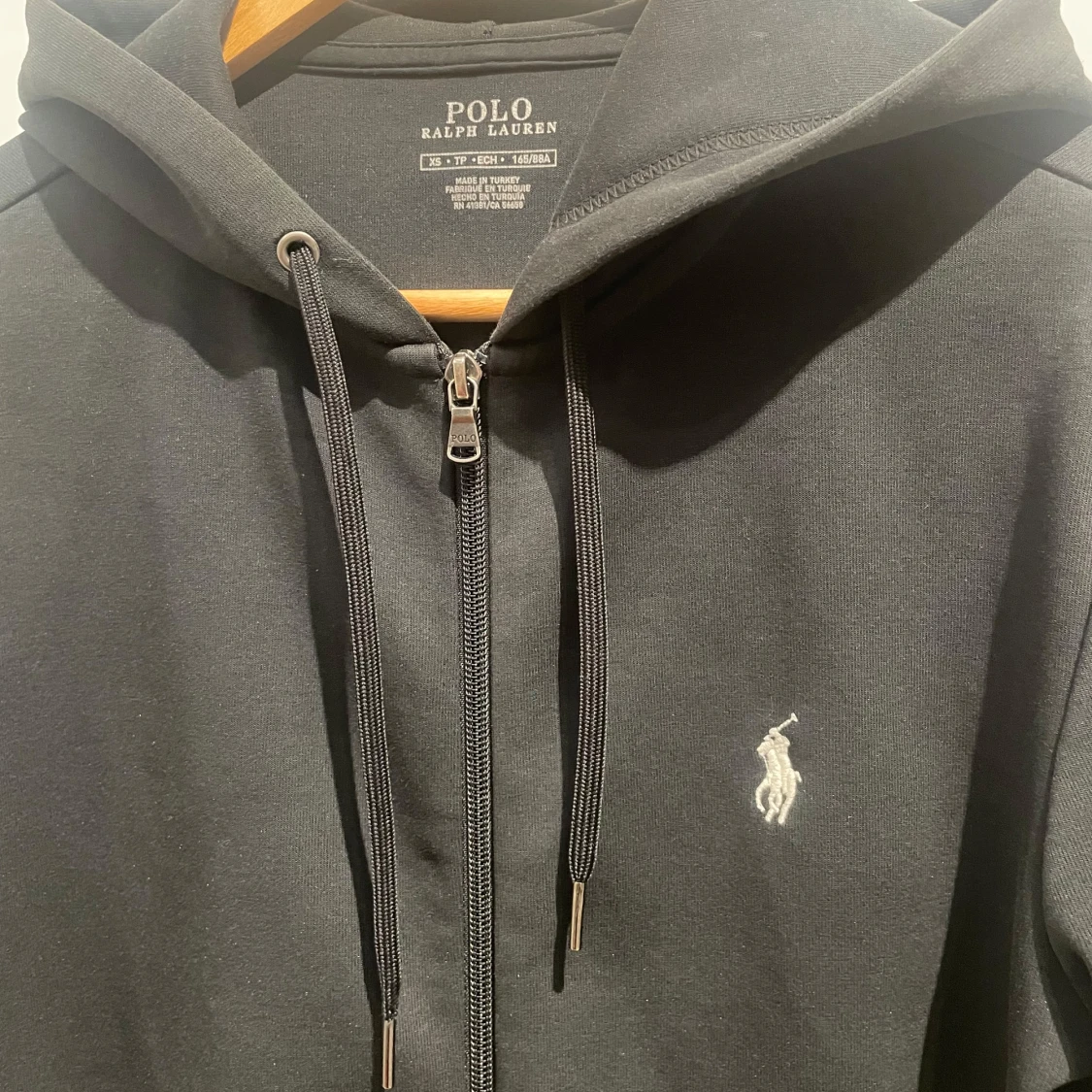 Svart hoodie från Polo Ralph Lauren med dragkedja framtill, huva med snörning och klassisk vit broderad logga på bröstet. Mjuk bomullskänsla och två fickor framtill. Perfekt för en chill och stilren look.