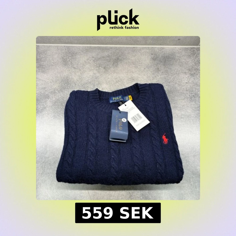 Kabelstickad mörkblå tröja från Polo Ralph Lauren med klassisk röd broderad logga på bröstet. Tröjan har rund halsringning, ribbade muddar och är tillverkad i mjuk ull. Perfekt för dig som gillar en tidlös och stilren look.