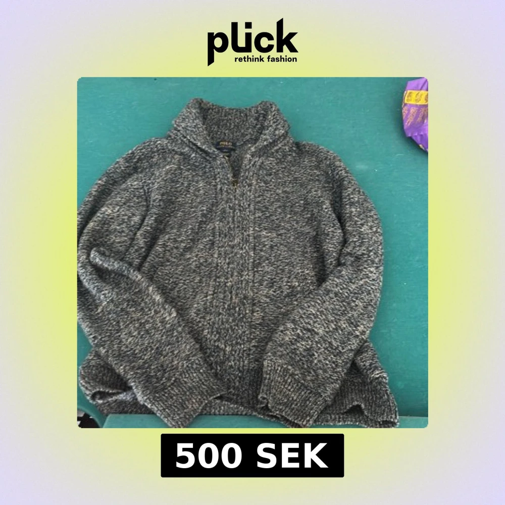 Mysig gråmelerad stickad kofta från Polo Ralph Lauren med dragkedja framtill och hög krage. Perfekt för kyliga dagar och enkel att matcha med olika outfits.