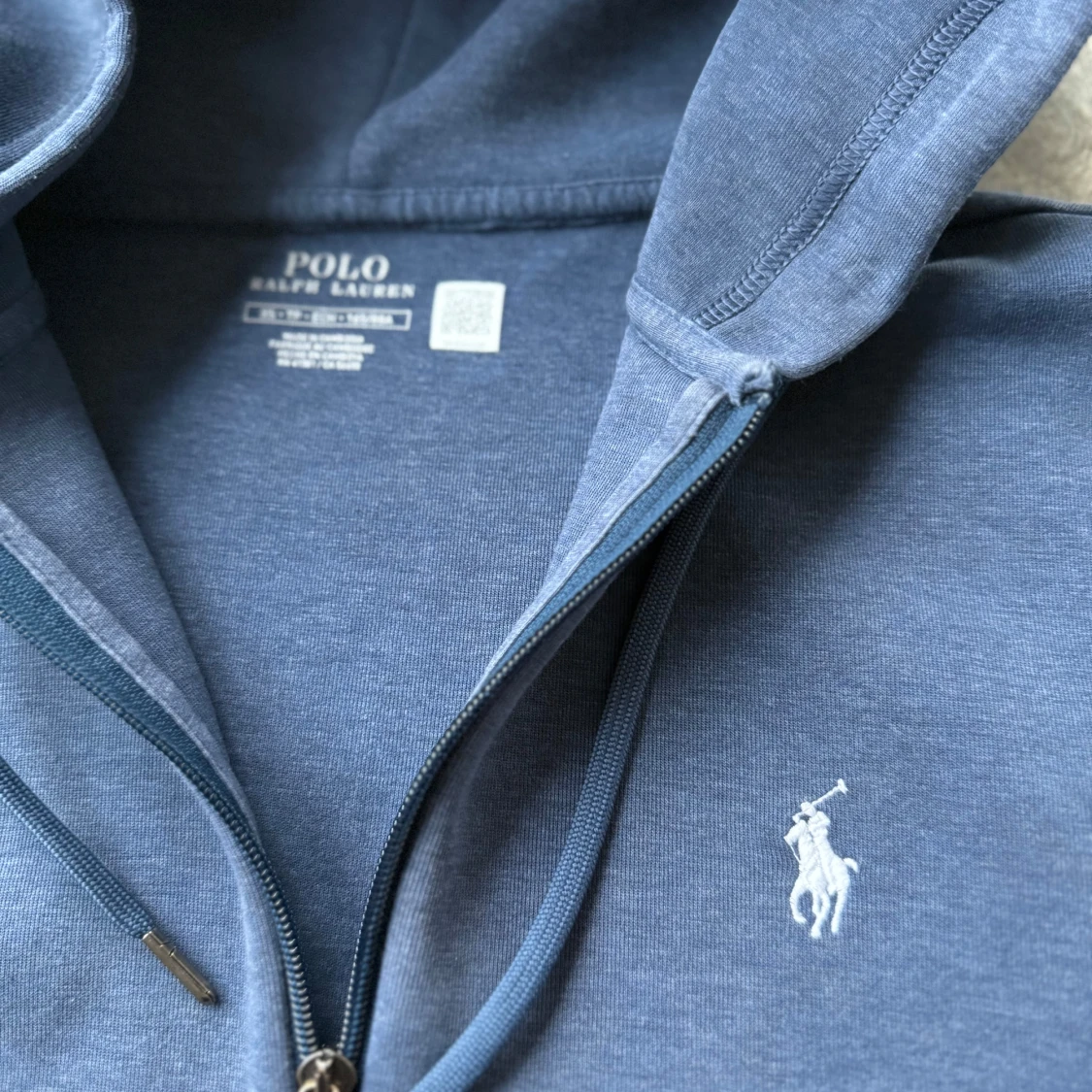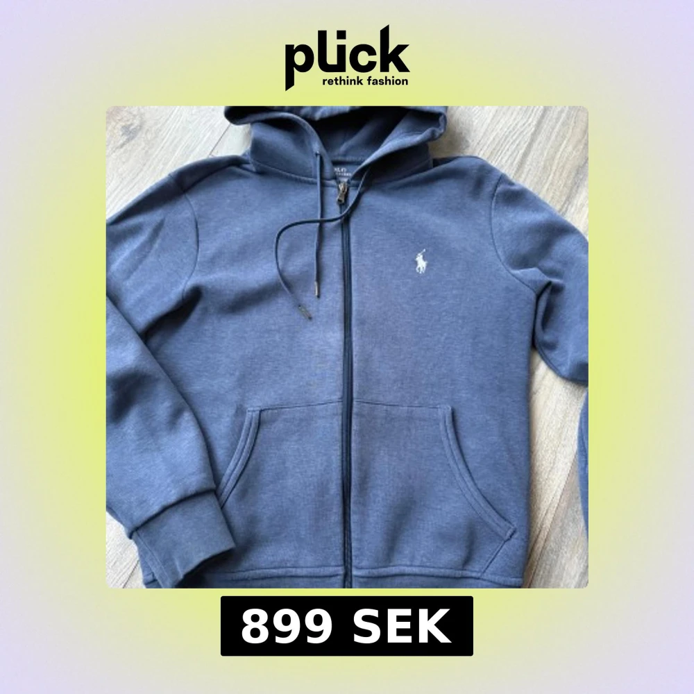 Säljer en snygg blå hoodie från Ralph Lauren med dragkedja och klassisk logga på bröstet. Huvan har justerbara snören för extra komfort. Snygg blå färg nu till våren och sommaren!