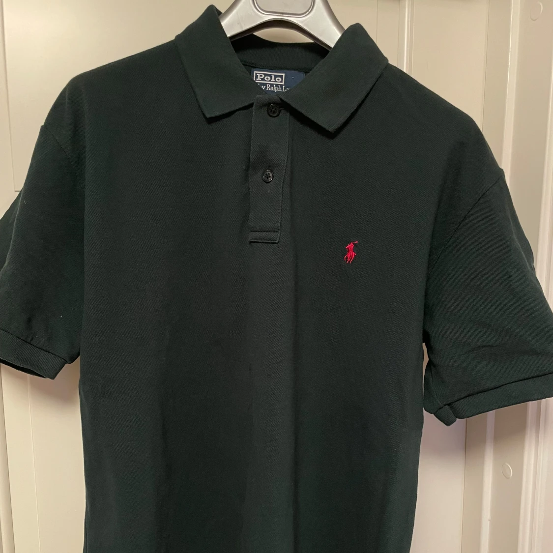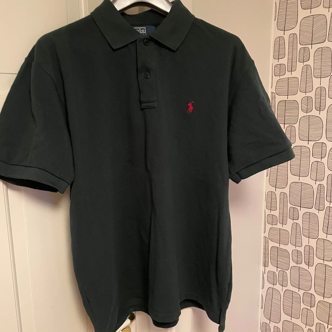 Snygg mörkgrön pikétröja från Polo Ralph Lauren med klassisk krage och knappar framtill. Den har en röd broderad logotyp på bröstet och korta ärmar. XXL men sitter mer som L/XL, i längden passar den någon som är 180-190 ca. Vill du ha bild med den på så är det bara att skriva.