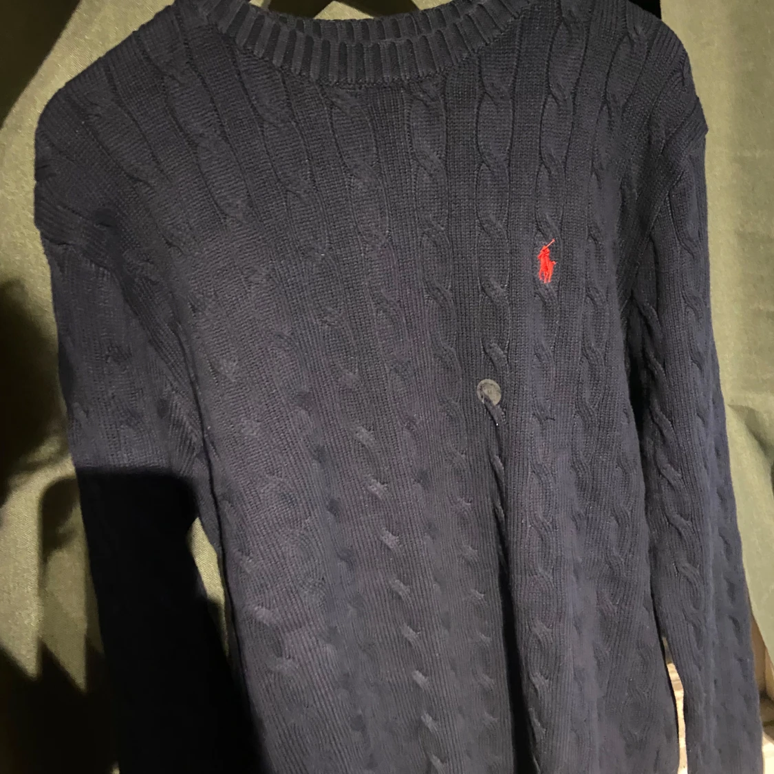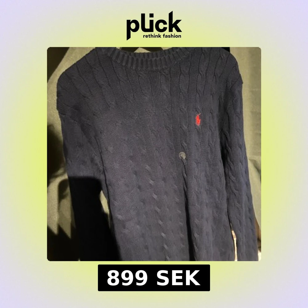 Tja, Säljer en stilren mörkblå stickad Ralph Lauren med. Size är M men sitter bättre på L, för fler frågor så är det endast att skriva 💪🏼💪🏼