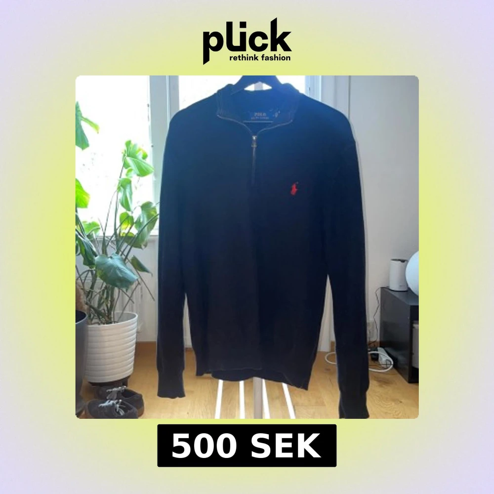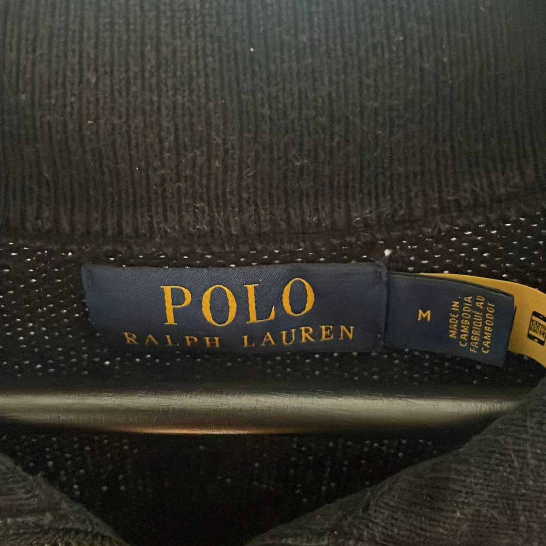 Svart långärmad tröja från Polo Ralph Lauren med röd broderad logga på bröstet. Tröjan har en snygg half zip-dragkedja vid halsen och är tillverkad i ett mjukt stickat material. Perfekt för dig som gillar klassisk och stilren look.