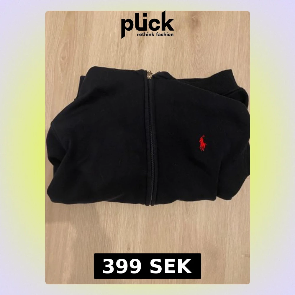 Snygg svart zip-hoodie från Polo Ralph Lauren. Klassisk modell med rött broderat logomärke på bröstet. Mjukt och bekvämt material, perfekt till vardags. Använd men i fint skick. Storlek s men passar till m också!