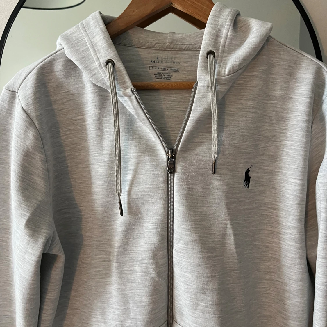 Säljer en stilren ljusgrå hoodie från Ralph Lauren med dragkedja och huva. Tröjan har snörning i huvan och den klassiska svarta Polo-loggan broderad på bröstet. Perfekt för en avslappnad look. Jätte fint skick och inga slitningar förutom att de är lite nopprigt vid brösted men syns knappt, skriv privat om du har några funderingar! Mvh