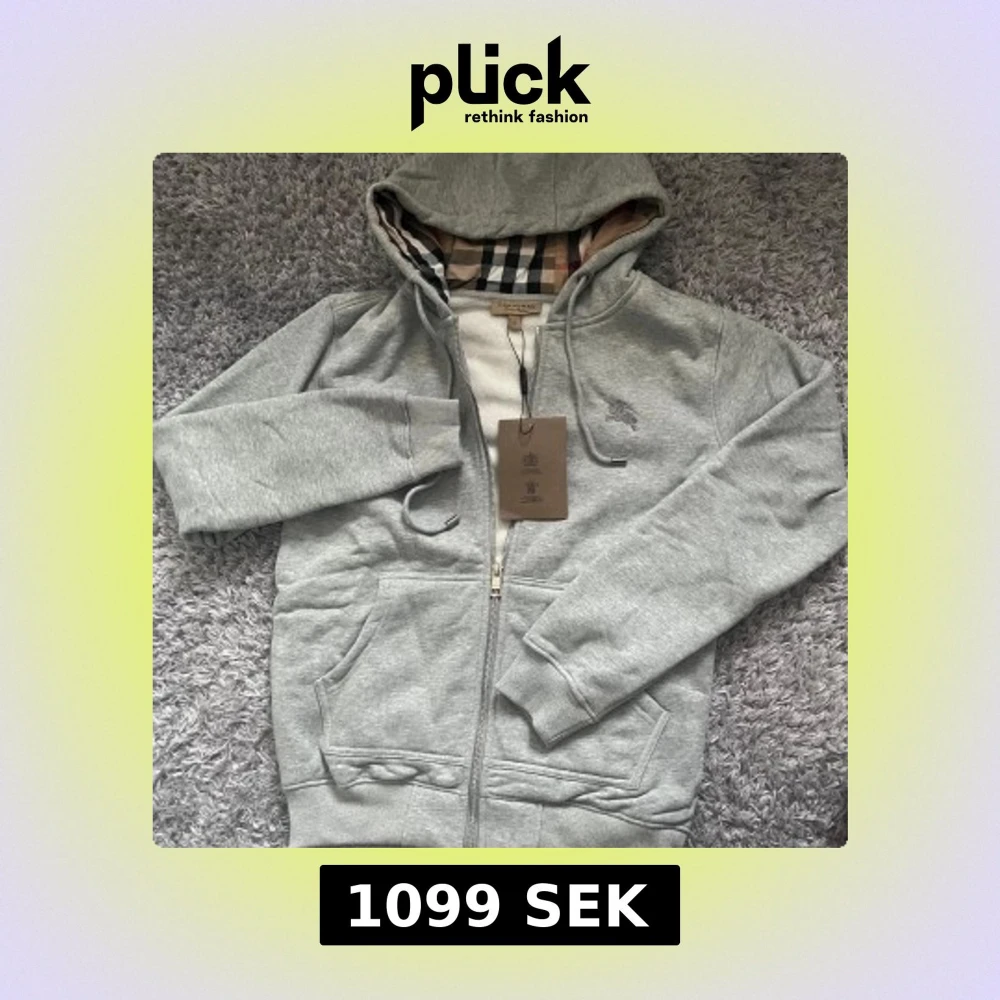 Snygg grå hoodie från Burberry med klassiskt rutigt foder i huvan, dragkedja framtill och broderad logga på bröstet. Mjuk insida och praktiska fickor. Perfekt för dig som vill ha en stilren och lyxig look. Helt ny och oanvänd med prislappen på, tveka inte att fråga frågor