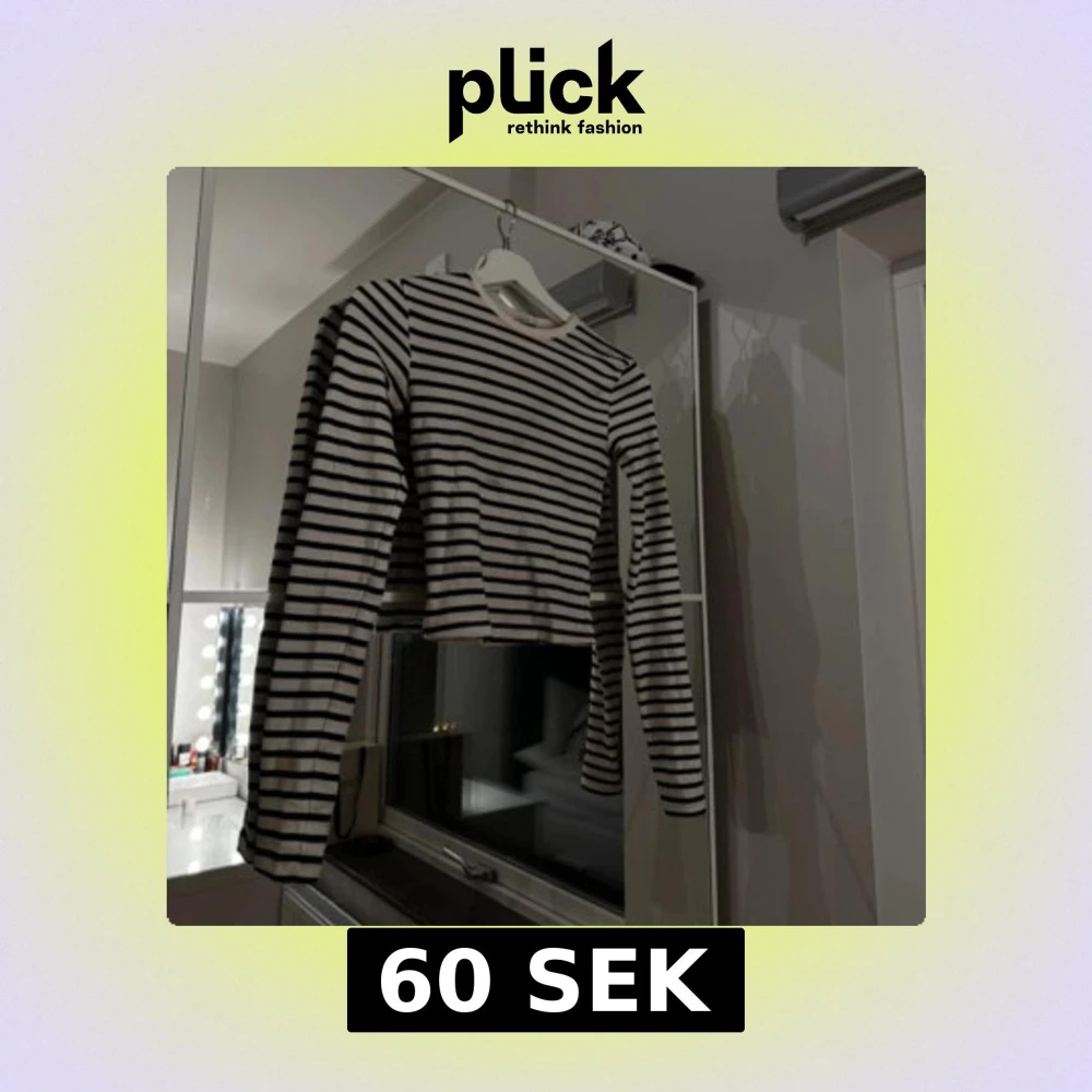 Säljer en stilren randig tröja med långa ärmar. Tröjan är croppad och har ett klassiskt svartvitt mönster. Perfekt för en avslappnad look.