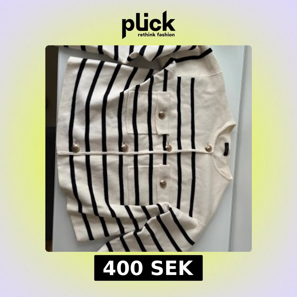 Snygg randig kofta från Massimo Dutti i svart och vit med dekorativa knappar framtill. Koftan har två fickor och en klassisk design som passar perfekt för både vardag och mer uppklädda tillfällen. Använd vid få tillfällen, säljs pga att den blivit liten på mig.