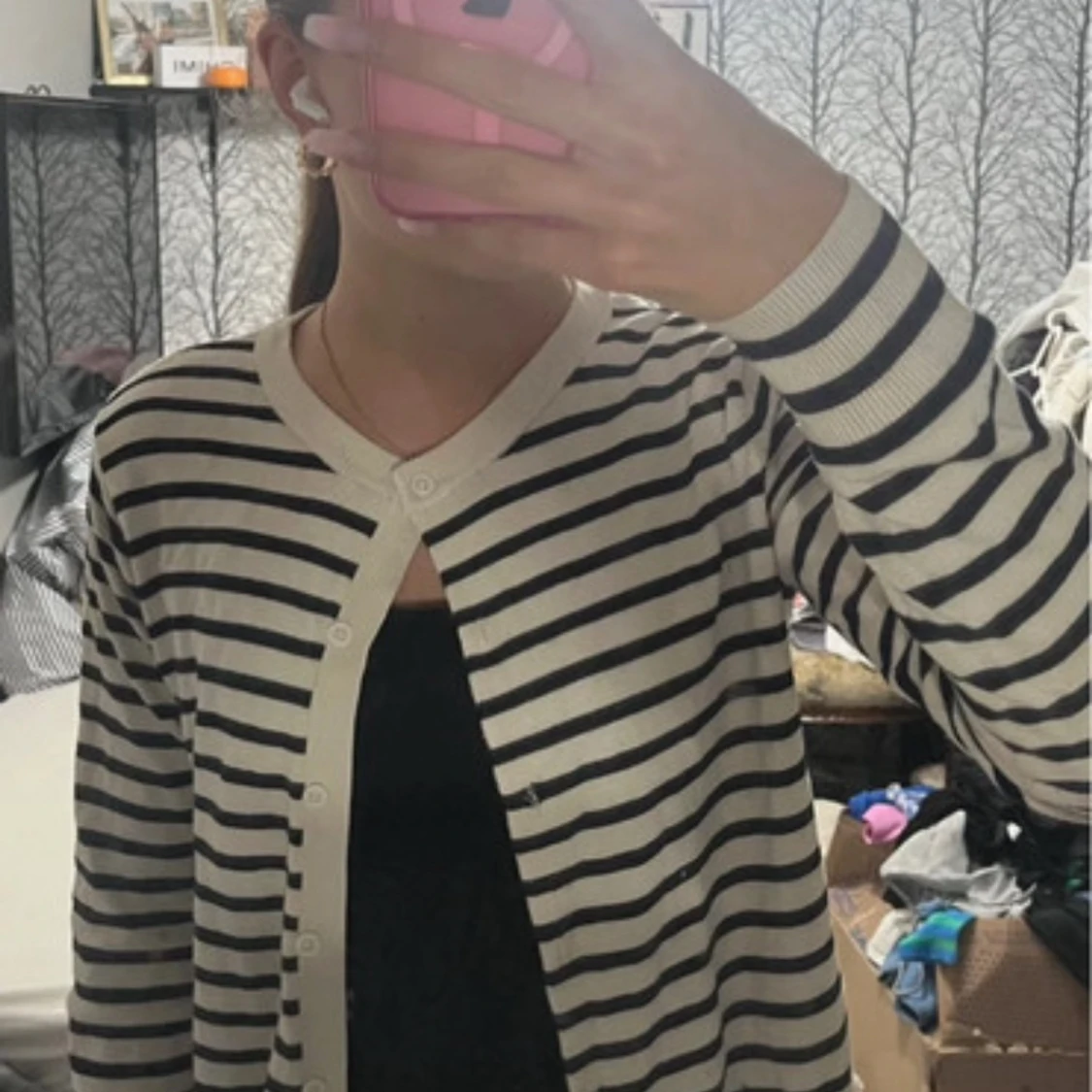 Kofta från H&M, randig i svart/cream färg, använd några gånger🩷