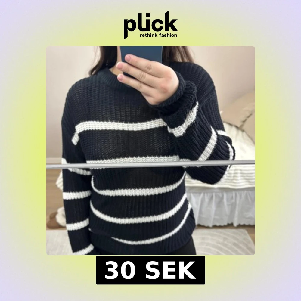 Svart stickad med vita ränder tröja från Lager157. Väl använd och har små trådar som sticker ut. Storlek S, större i storleken. Vid frågor är de bara att skriva.