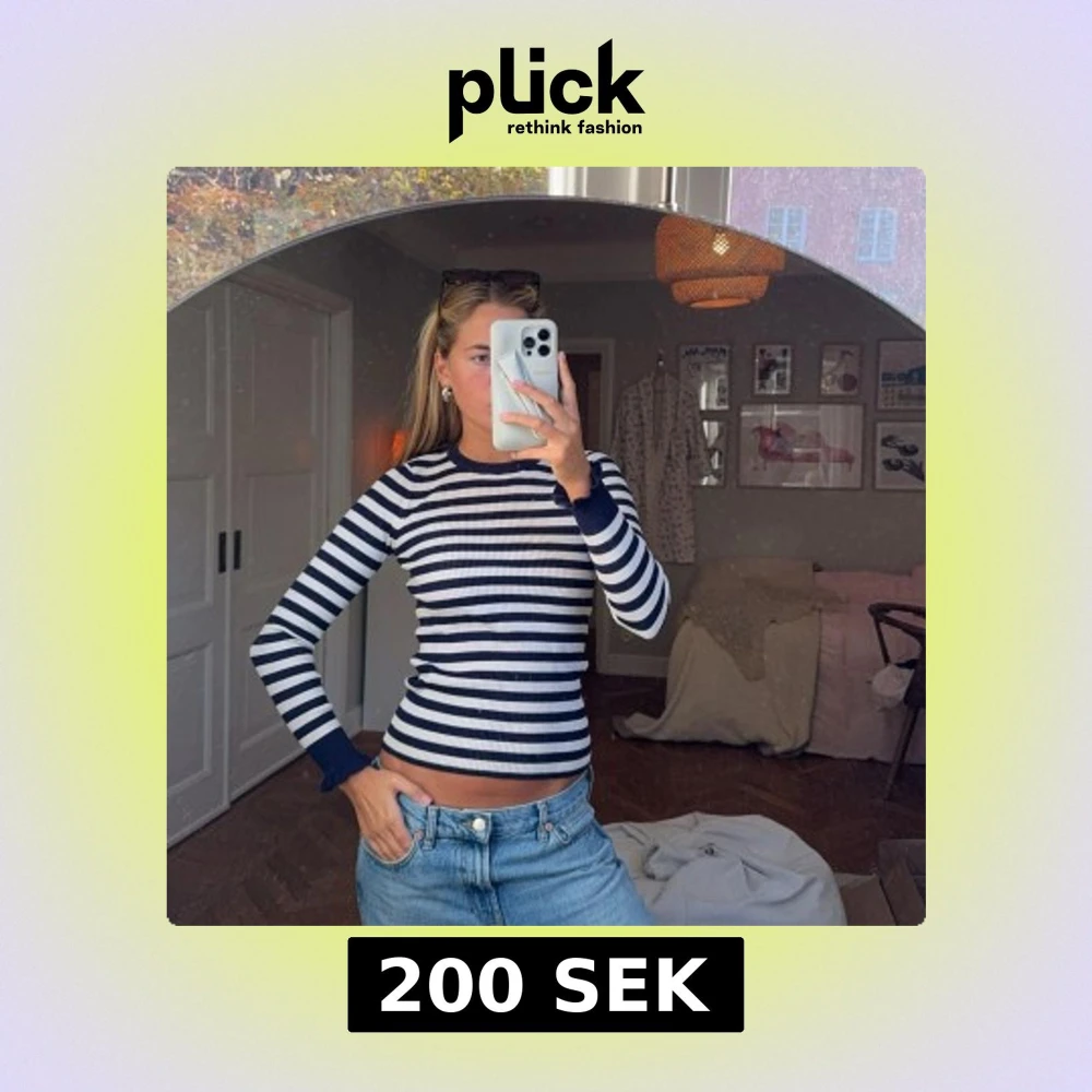 Säljer en superfin randig tröja i marinblått och vitt. Den är långärmad och har en tight passform som framhäver figuren. Perfekt för både höst och vår! Tröjan är i bomull och känns riktigt skön mot huden. Passar perfekt till ett par jeans för en avslappnad look.