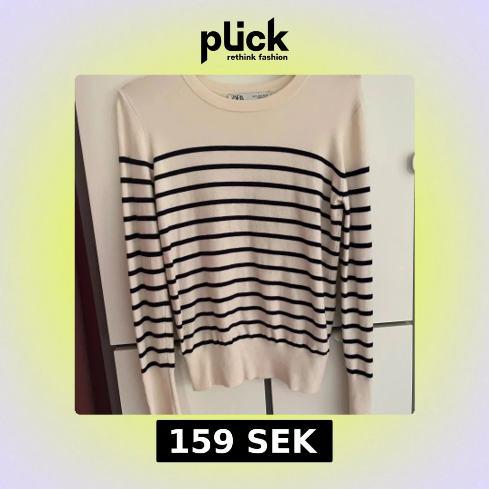 Snygg långärmad tröja från Zara i beige med svarta horisontella ränder. Mjuk och skön kvalitet, perfekt för dig som gillar klassisk stil med en modern twist. Rund halsringning och ribbad nederkant ger en clean look.
