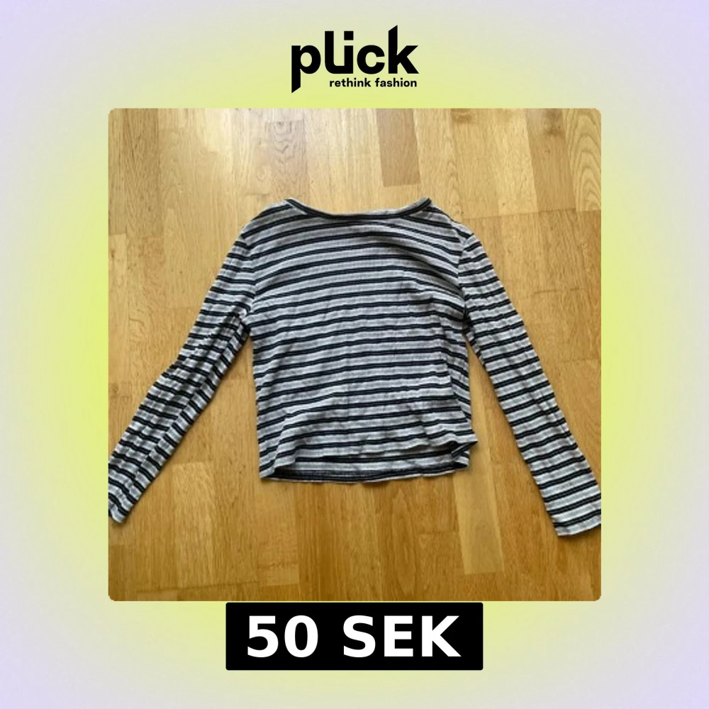 Säljer en ribbad långärmad tröja från H&M Divided i svart och grått med smala horisontella ränder. Tröjan har en klassisk passform, står XL på lappen men gissar på att den är mer L
