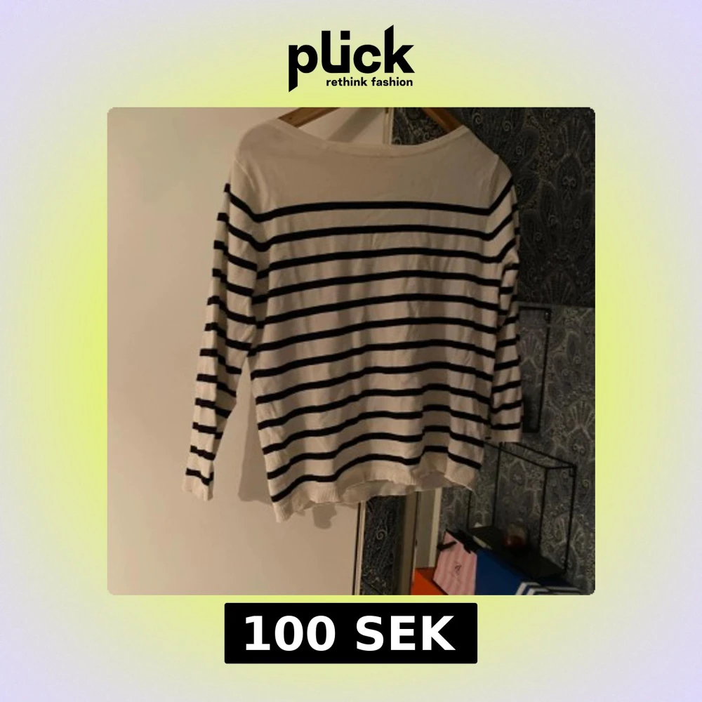 Säljer en klassisk långärmad tröja med svarta och vita horisontella ränder. Tröjan har en rundad hals och är tillverkad i mjuk bomull, perfekt för chill dagar. Passformen är normal och den har en enkel, stilren look som funkar till jeans eller kjol. Dom har lite kortare ärmar. 100 kr för den vita, 50 kr för den svarta.