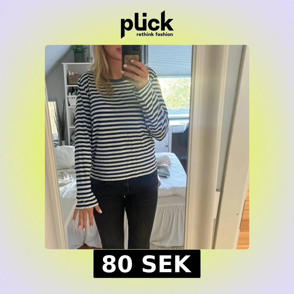 Säljer en klassisk långärmad tröja med marinblå och vita ränder. Har dock rivit av lappen på tröjan så vet inte var den kommer ifrån men utöver det är den i bra skick.