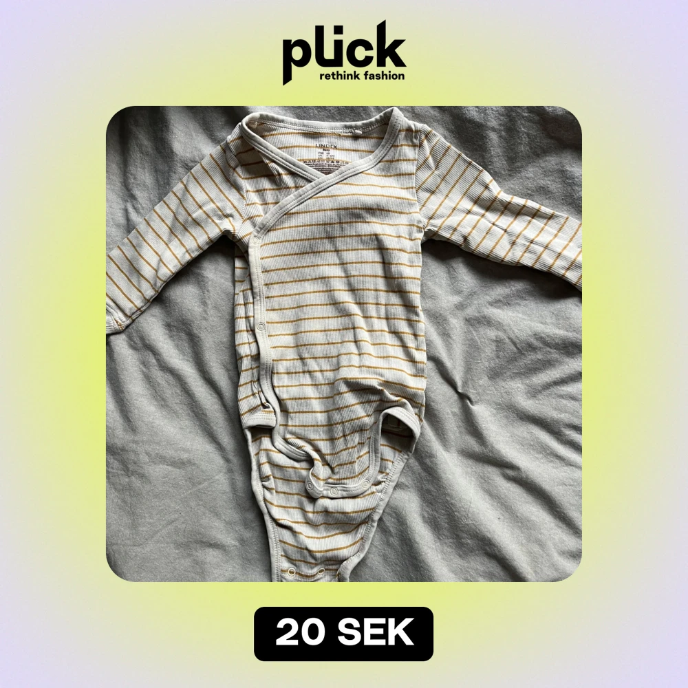 Säljer en superfin randig omlottbody från Lindex i storlek 68. Den är vit med gula ränder och har långa ärmar. Perfekt för både vår och höst! Den är i bra skick och har praktiska knappar för enkel påklädning. Perfekt för din lilla stjärna! 🌟