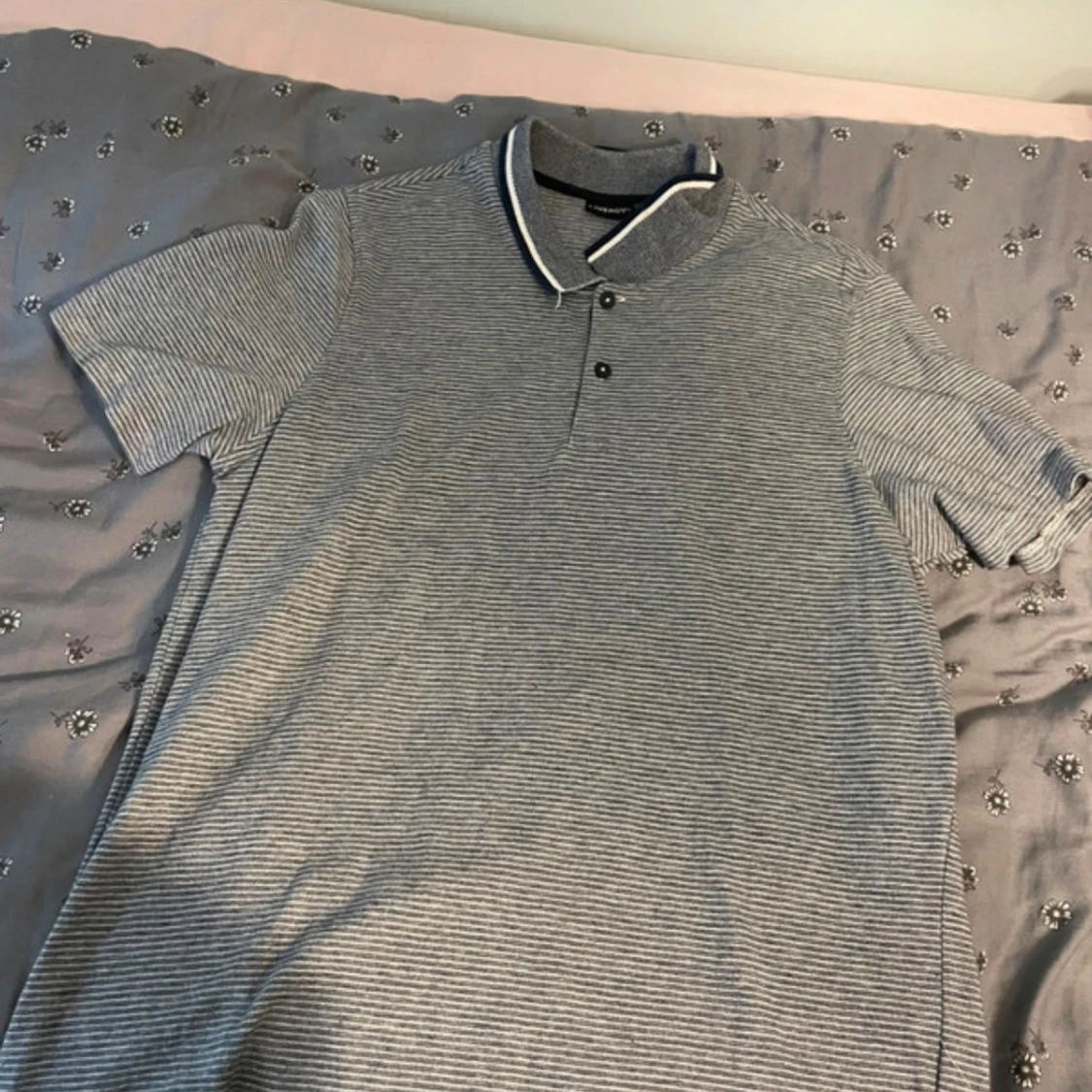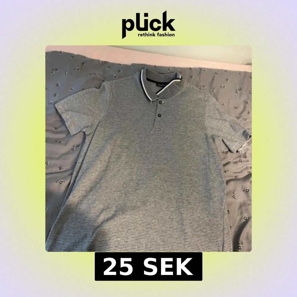 Snygg grå och vit randig pikétröja från Livergy med klassisk krage och två knappar framtill. Tröjan har korta ärmar och en tunn, mjuk känsla som passar perfekt till varmare dagar. Diskret vit kant på kragen för extra stilpoäng.