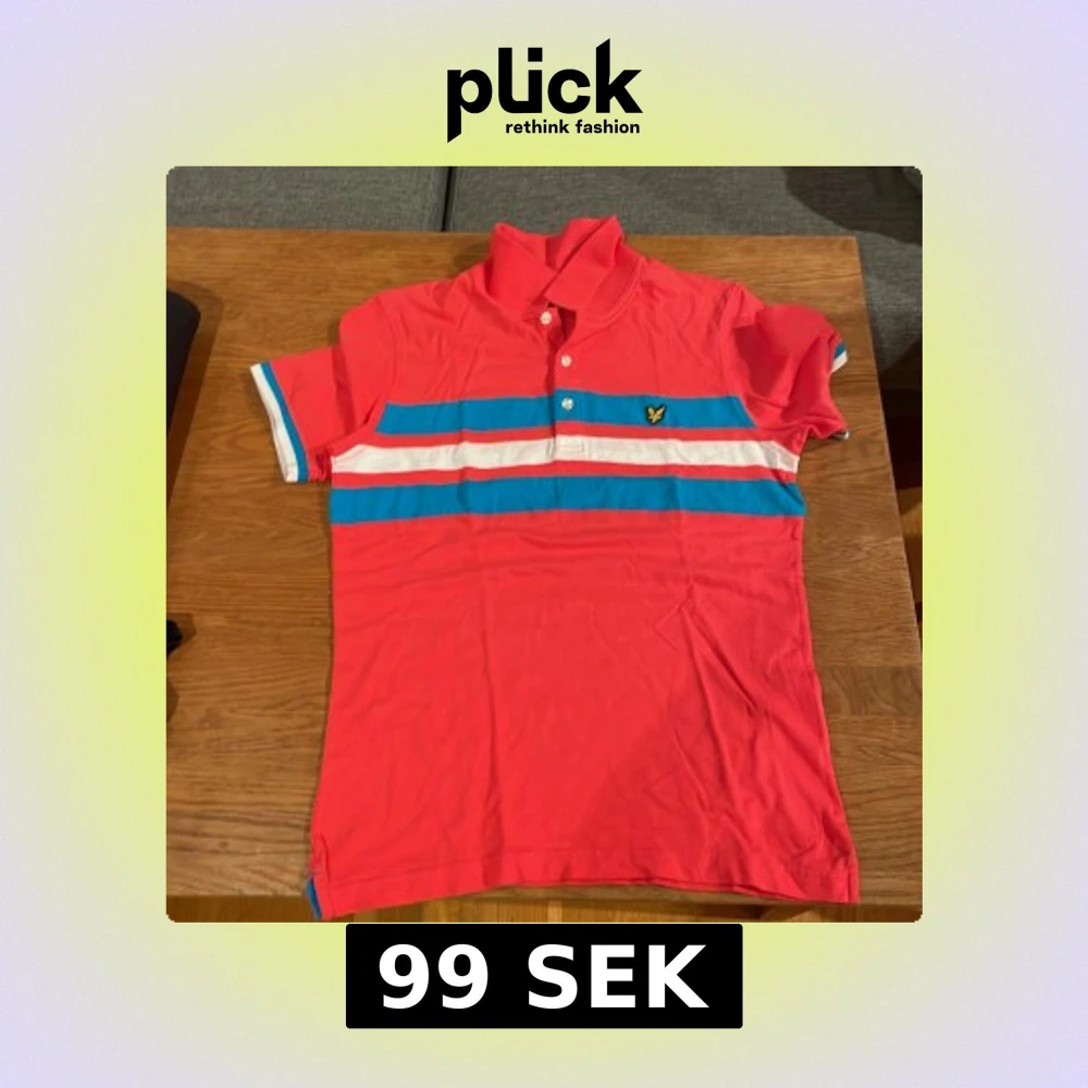 Säljer en snygg pikétröja från Lyle & Scott i medium. Tröjan är korallröd med breda blå och vita ränder över bröstet och ryggen. Klassisk krage, kortärmad och med knappar framtill. Ikonisk gul logga på bröstet. Perfekt för vår och sommar!