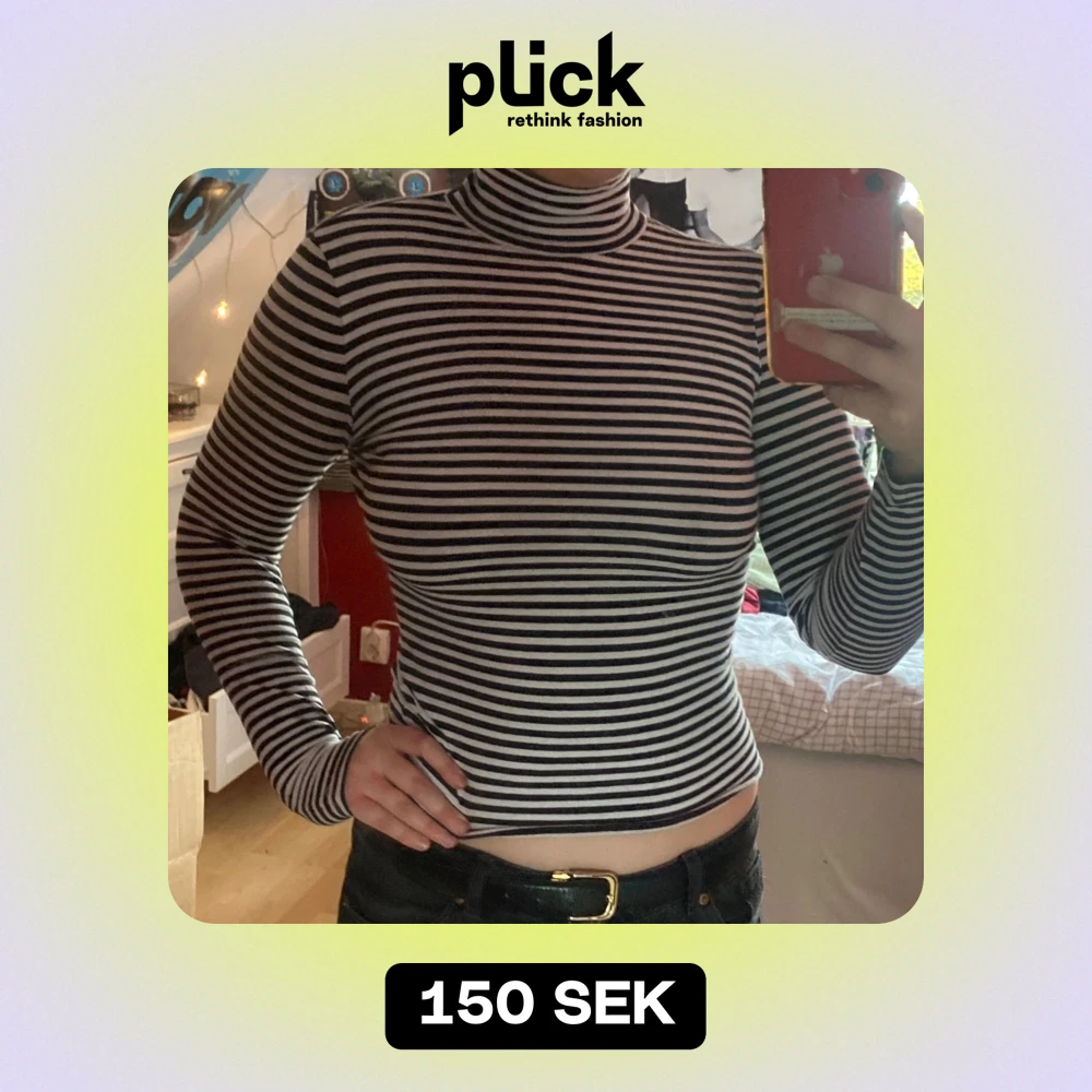 En svart och vitrandig polotröja från Monki! Knappt använd och har stretchigt material.