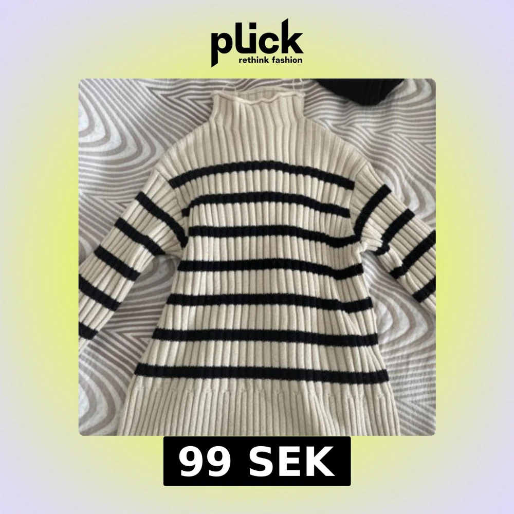 Ribbstickad halvpolotröja från Zara i beige med svarta ränder. Tröjan har hög krage, lång ärm och slits vid ärmslut. Den är stickad i ett mjukt material och har en loose passform som ger en chill vibe. Pris kan diskuteras