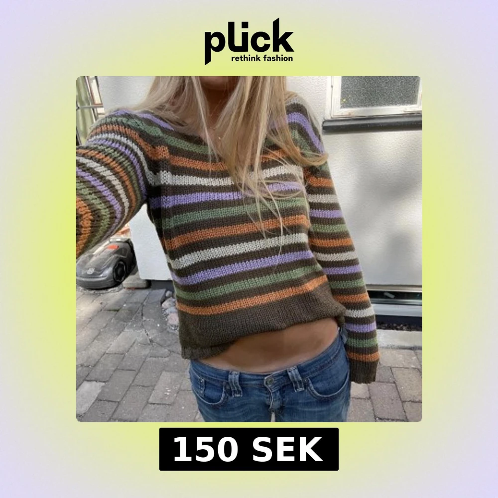 Säljer en stickad croppad tröja med ränder i grönt, lila, orange, vitt och brunt. Perfekt för sommaren!❤️
