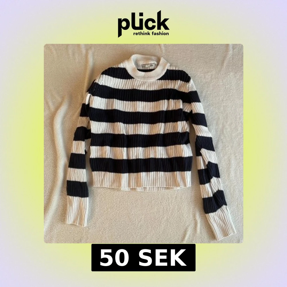 Säljer en randig stickad tröja. Den är andvänd. Storleken är XL men är som en M. Skriv vid intresse eller om du har nån fråga! 💕