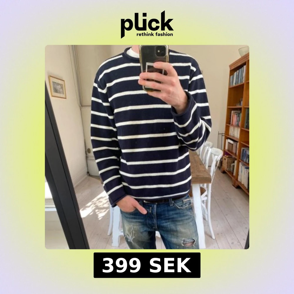 Sjukt fet höstig randig stickad tröja från Albatross 🙌 Tröjan är marinblå med vita ränder och är perfekt för höstkvällar nu när det börjar bli lite svalare 🙌 Storlek XL men passar mer som en M, skric vid minsta lilla fråga! 👍