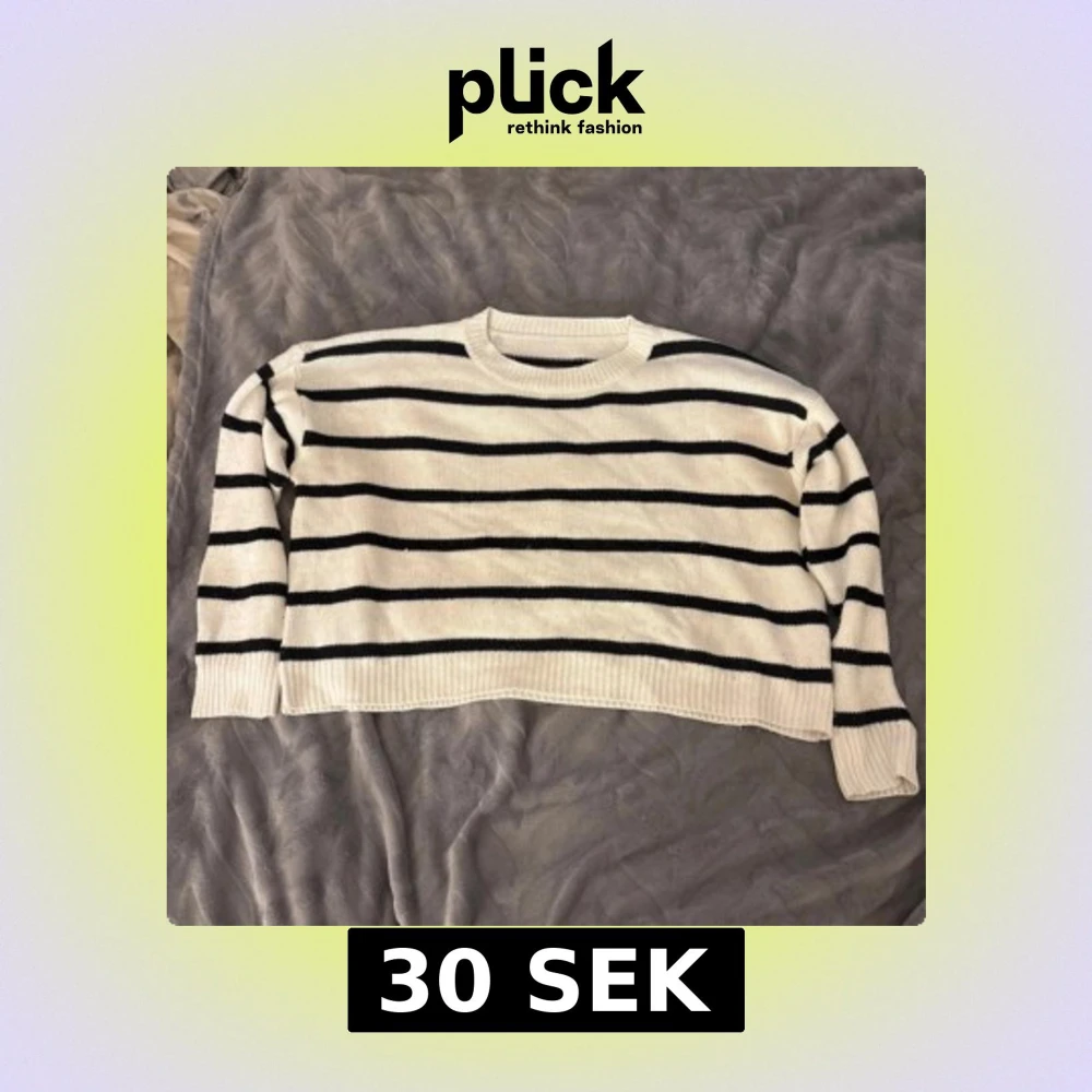 Säljer en vit stickad tröja från shein med svarta horisontella ränder. Tröjan har rund halsringning, långa ärmar och ribbade muddar vid ärmslut och nederkant. Perfekt för dig som gillar en klassisk och chill stil.