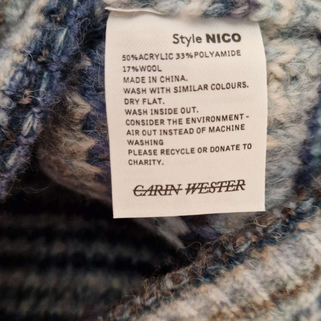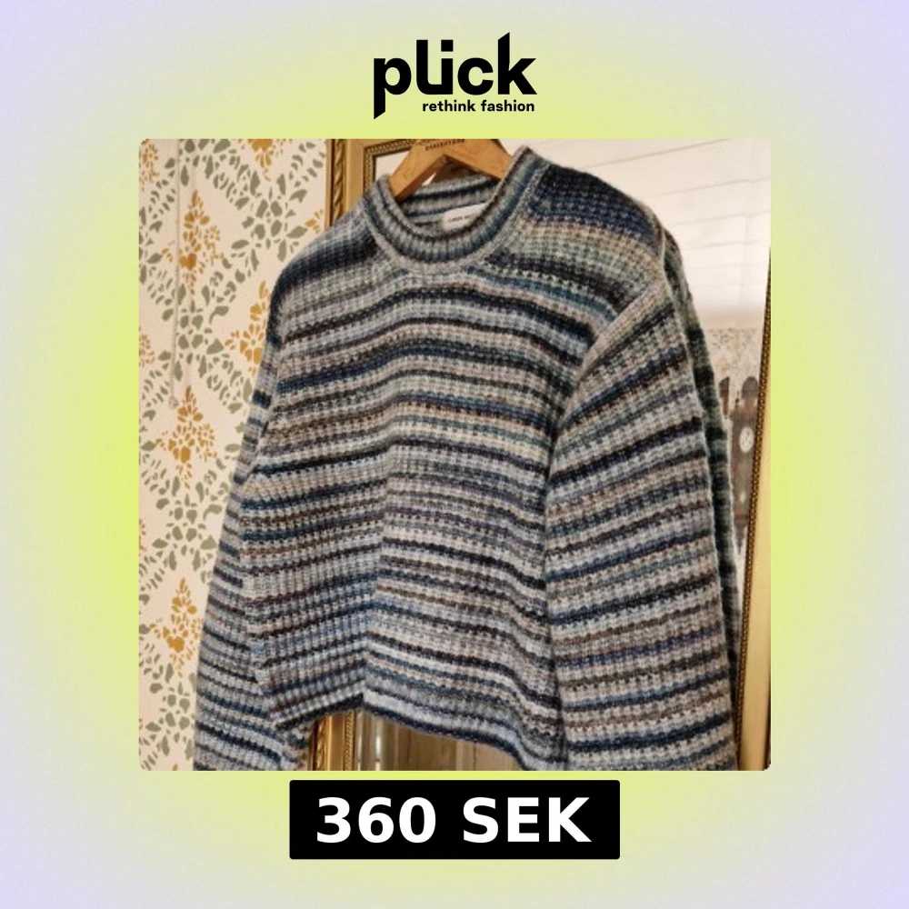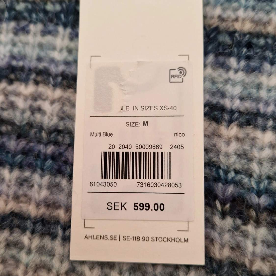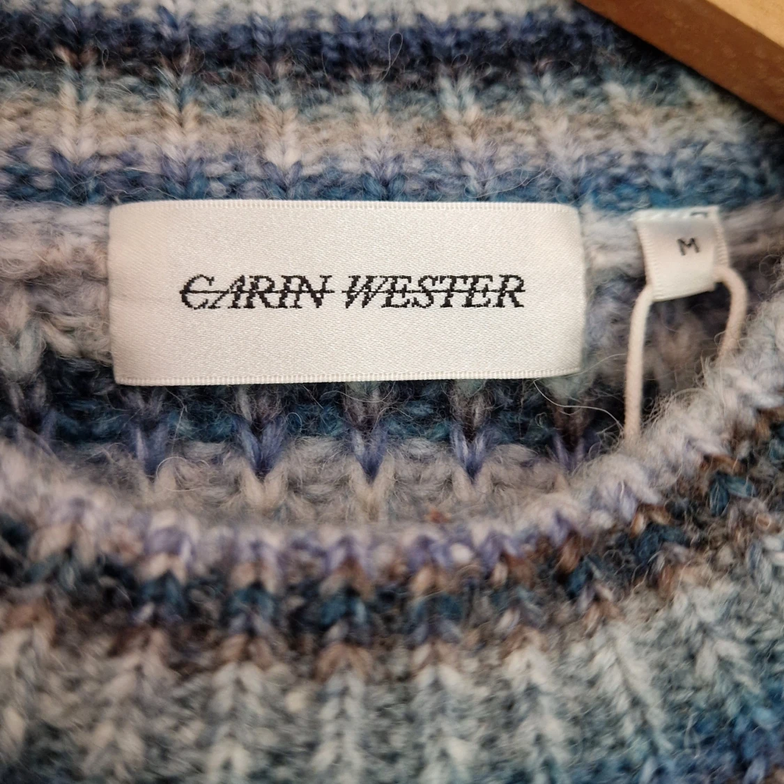 Säljer en randig stickad tröja från Carin Wester i blå, grå och beige toner. Tröjan har en loose passform, rund halsringning och långa ärmar. Perfekt för lager-på-lager och chill höst- eller vinterstil. Ny med lapp, inga anmärkningar.