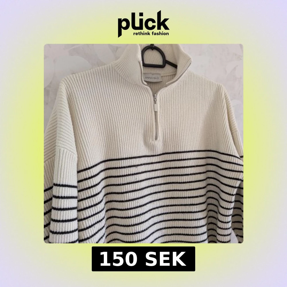 Säljer en ribbstickad vit tröja, supersnygg! Har använts en del så finns små noppror men inte alls mycket, fortfarande väldigt fin.