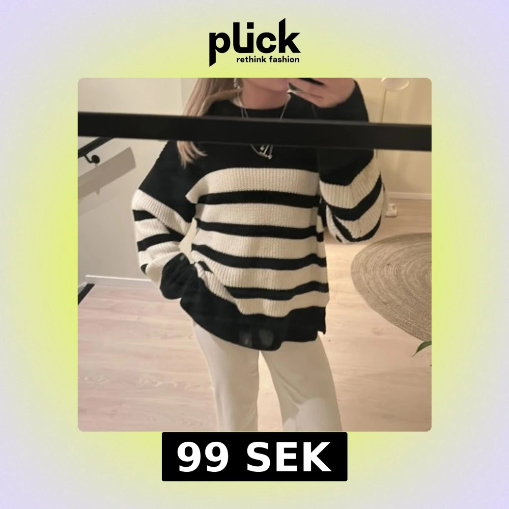 Säljer en snygg svart och vit randig stickad tröja från Gina Tricot. Tröjan har långa ärmar och en bekväm passform, perfekt för en stilren look. Den är gjord i ett mjukt material som håller dig varm och bekväm. Perfekt för kyligare dagar!