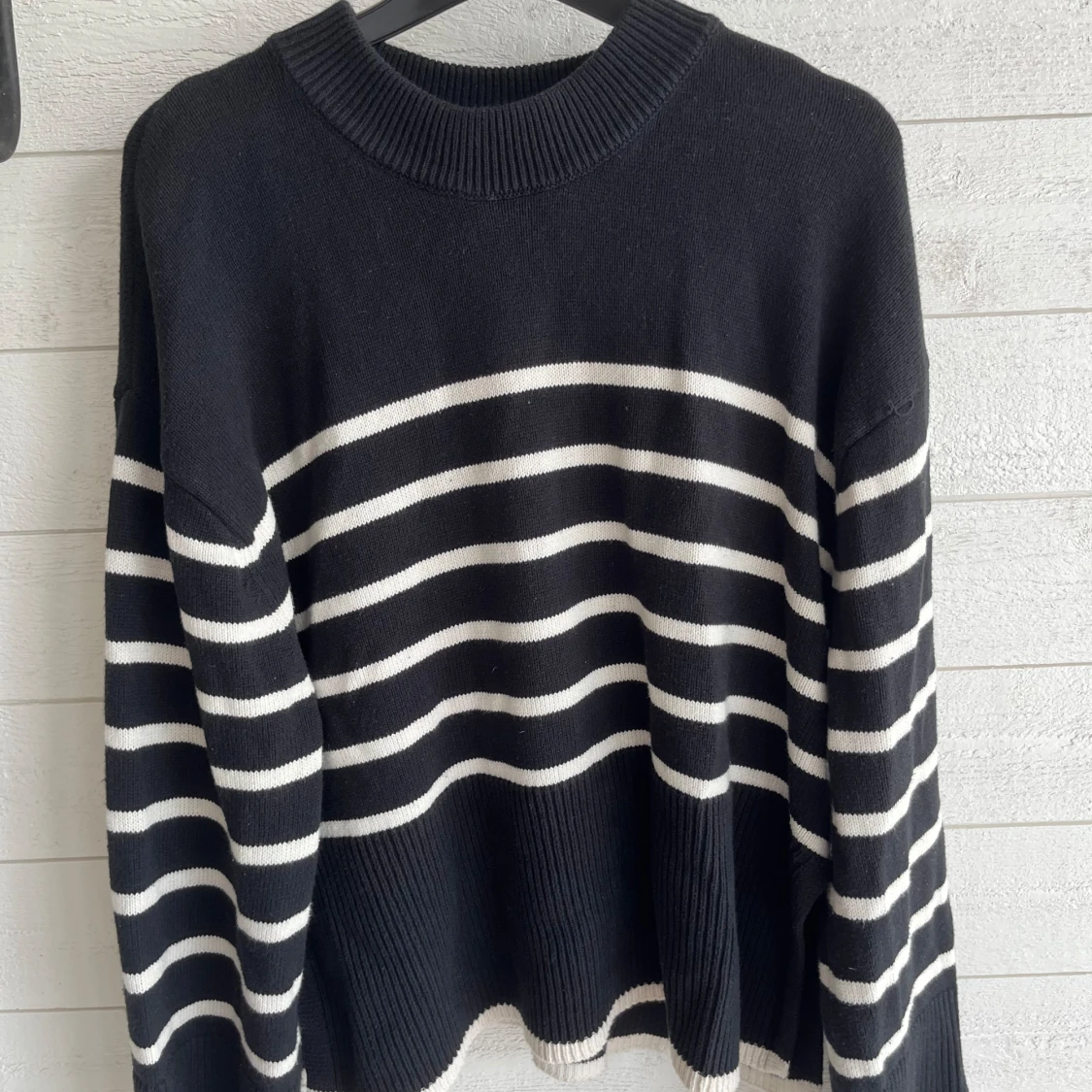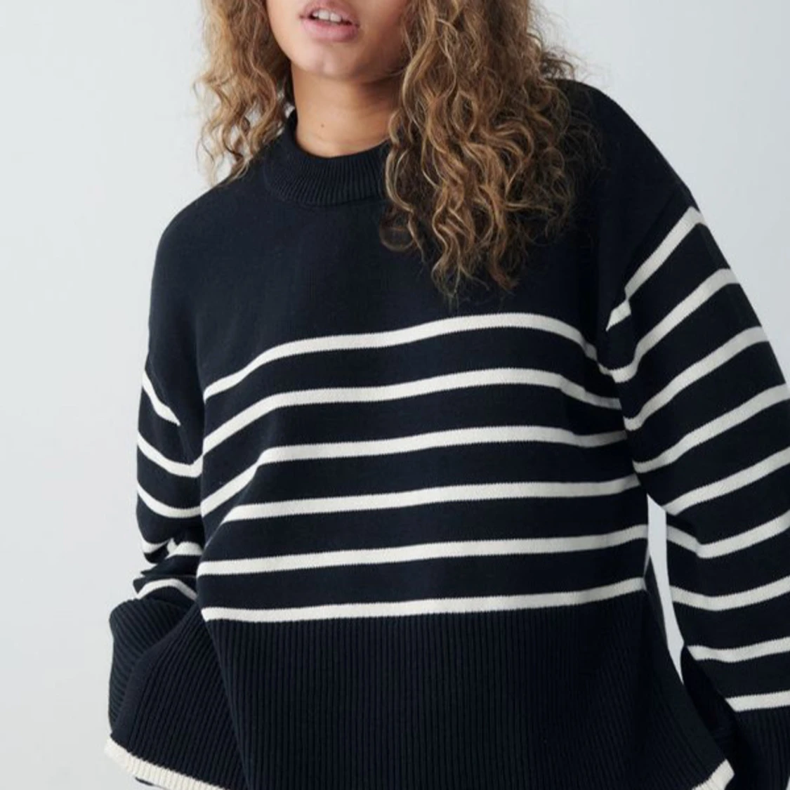 Säljer denna randiga stickade tröjan i fint skick från Gina Tricot. Skön, snygg och perfekt till hösten. Inga defekter och varsamt använd!