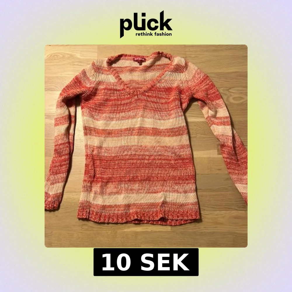 Säljer en snygg randig stickad tröja från Indiska i rosa, röd och beige. Tröjan har en v-ringad hals och långa ärmar, perfekt för kyligare dagar. Den är i storlek S och har en bekväm passform.