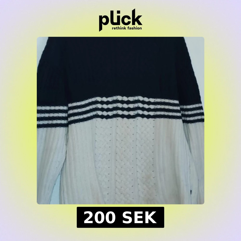Säljer en snygg stickad tröja från Lexington i svart och vit med randigt mönster. Tröjan har långa ärmar och en bekväm passform, perfekt för kyligare dagar. Den är både stilren och mysig.