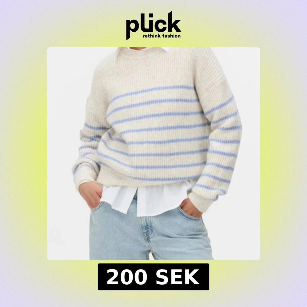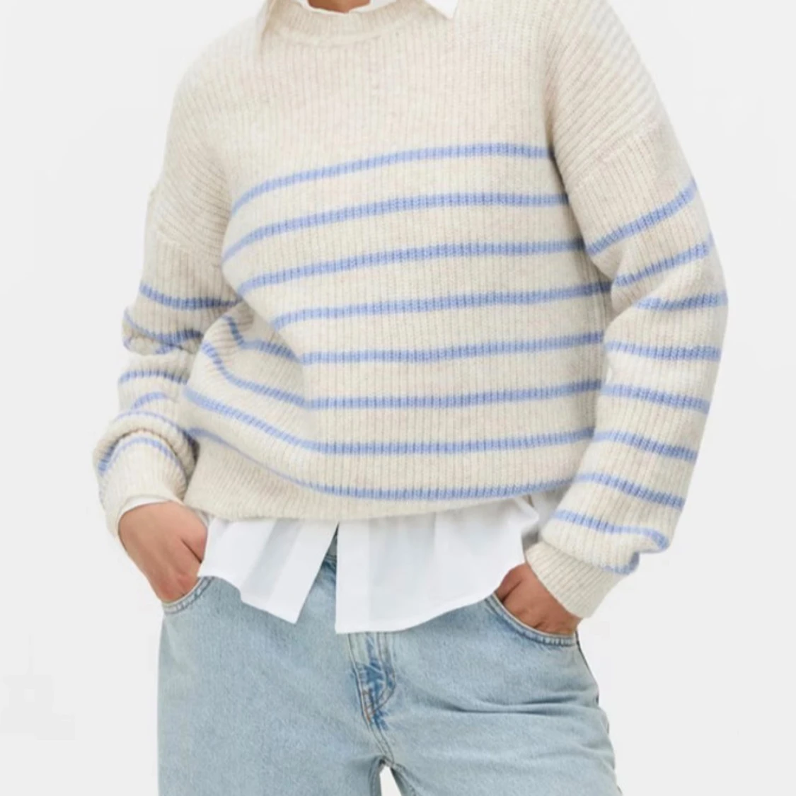 Supermysig stickad tröja från Primark i vitt med ljusblå ränder.