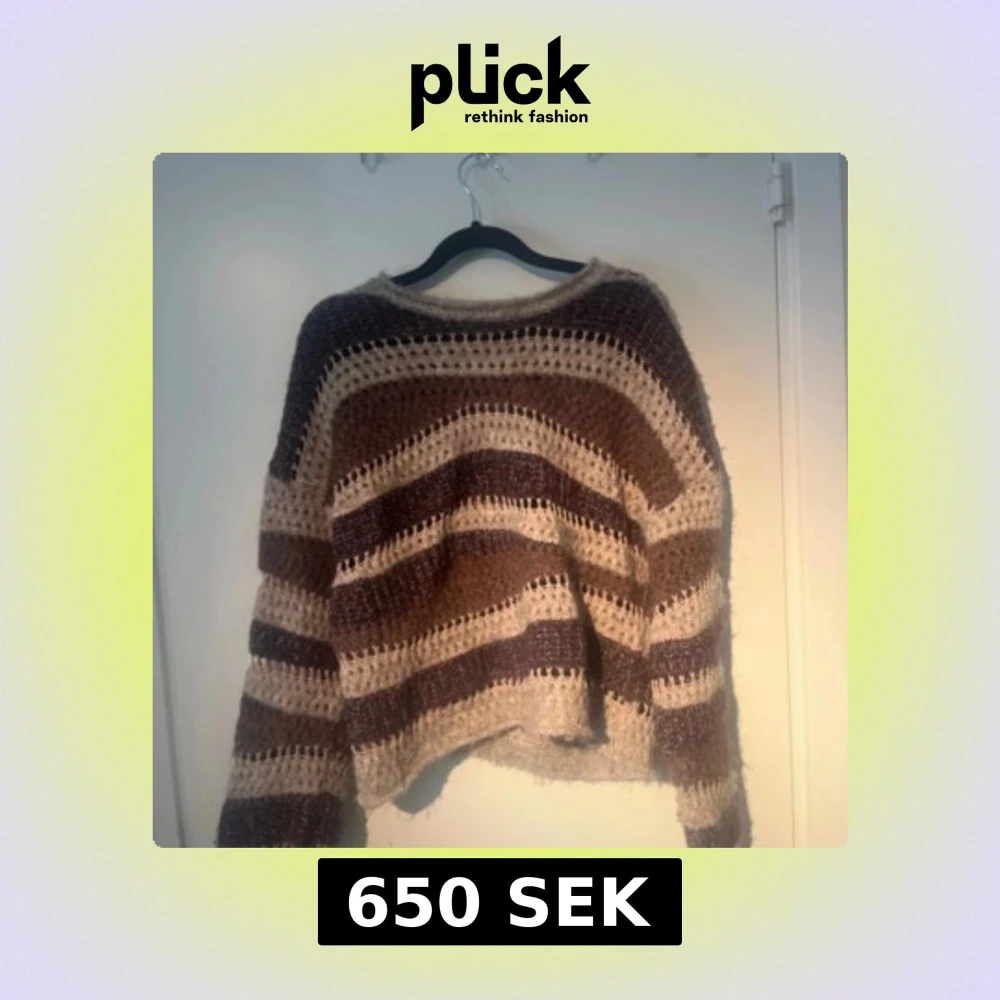 Säljer en mysig stickad tröja från Zara i jordnära toner av brunt och beige. Tröjan har ett randigt mönster och en luftig stickning som ger en skön känsla. Perfekt för kyligare dagar!