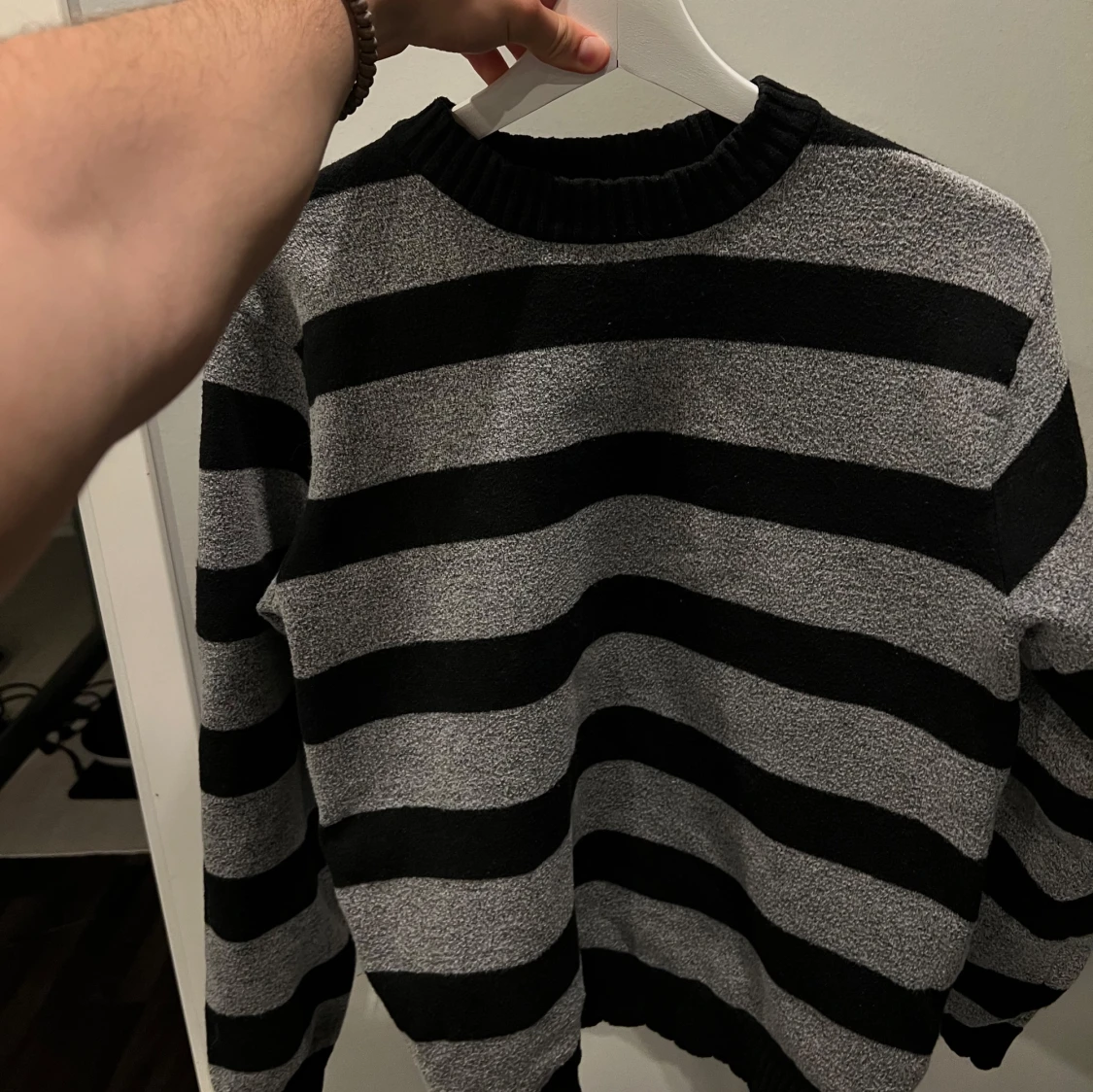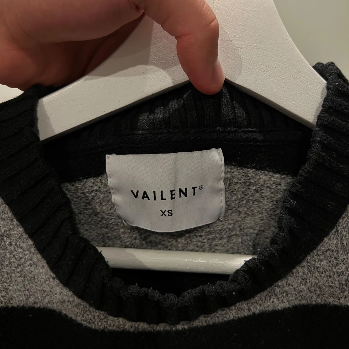 Säljer en svart och grå randig tröja från Vailent i storlek XS. Perfekt till hösten. Passar small i storlek, bra skick och tyngre material. Köpt för 699 kr.