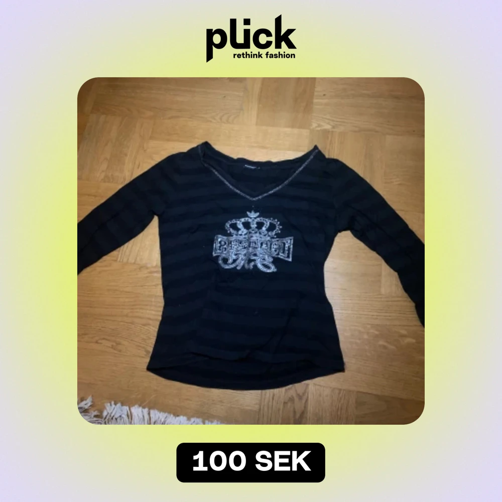 Cool trekvarts tröja med snyggt märke👑 Gråsvart randig, väldigt bekväm!!
