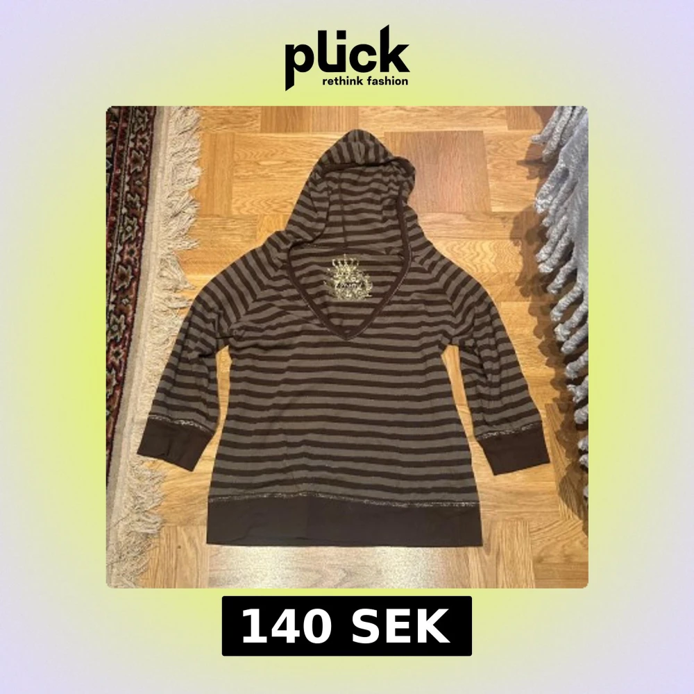 Super söt randig tröja med luva och trekvartsärmar. Den har guld detaljer och är i super skick!! Använd gärna köp nu💝