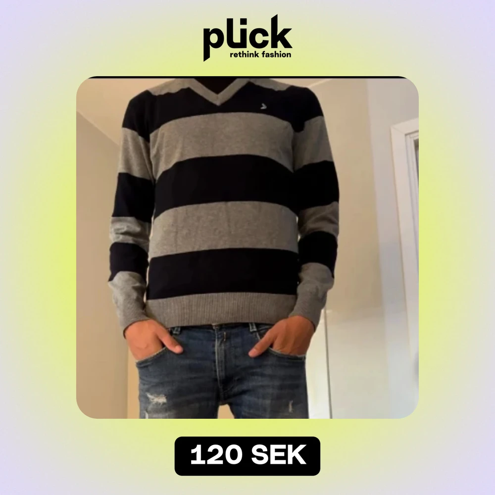 Säljer en snygg randig tröja från Boomerang i storlek S. Den har breda ränder i svart och grått med en v-ringad hals. Perfekt för både höst och vinter, och den är superbekväm att ha på sig. Tröjan är i bra skick och passar perfekt till ett par jeans!